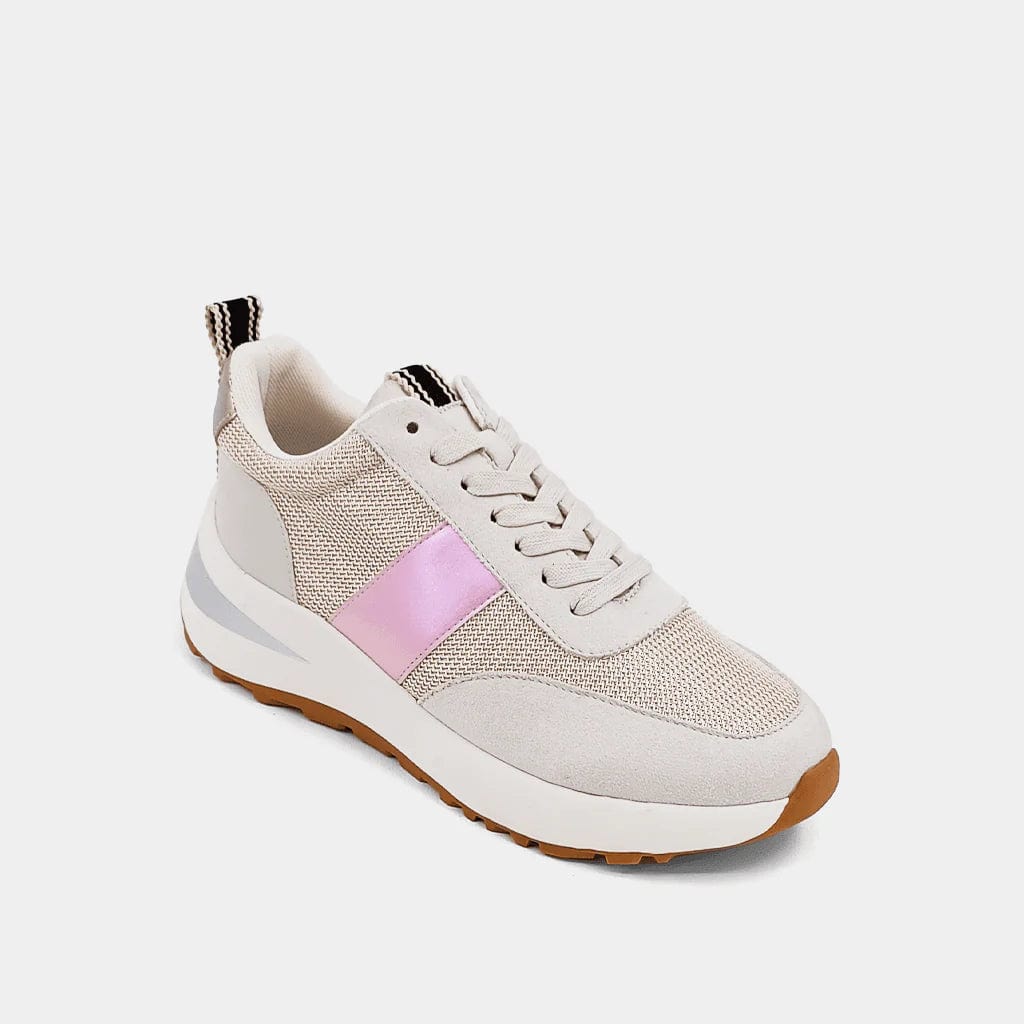 The SERAFINA sneakers offer a clean and modern look with their mix of colors and textures. The vintage-inspired chunky sole in white and silver, along with the carefully chosen color combinations, will elevate any casual outfit. These sneakers are made from faux buttery leather with touches of suede and mesh for a contemporary aesthetic. Pair them with your favorite jeans for a stylish look!