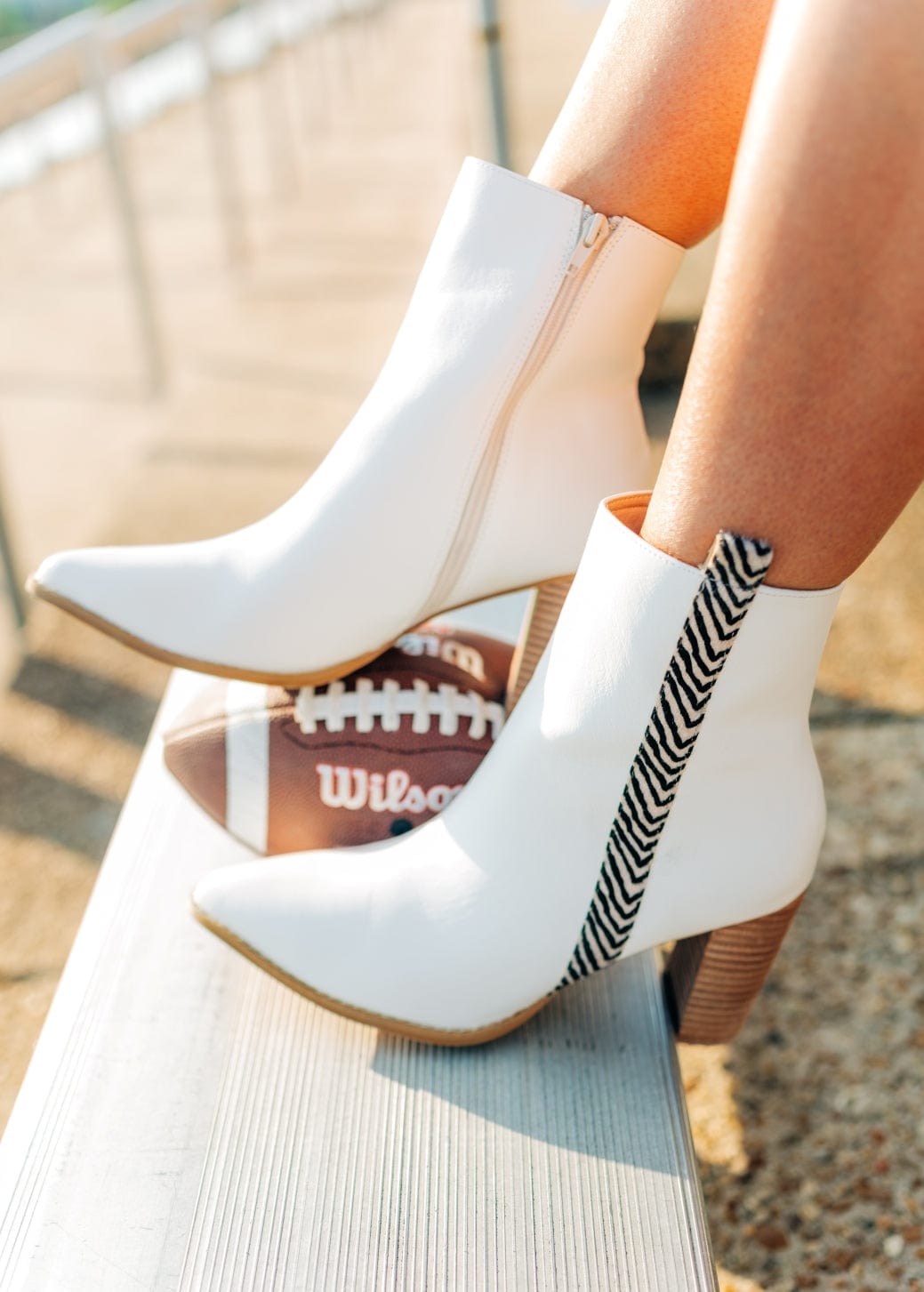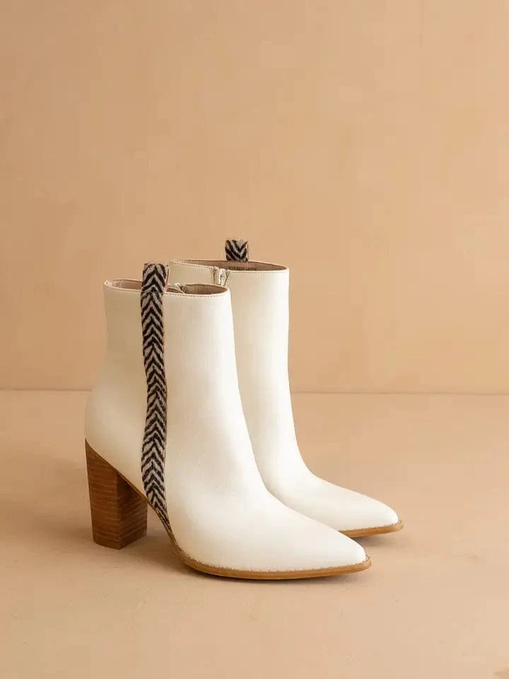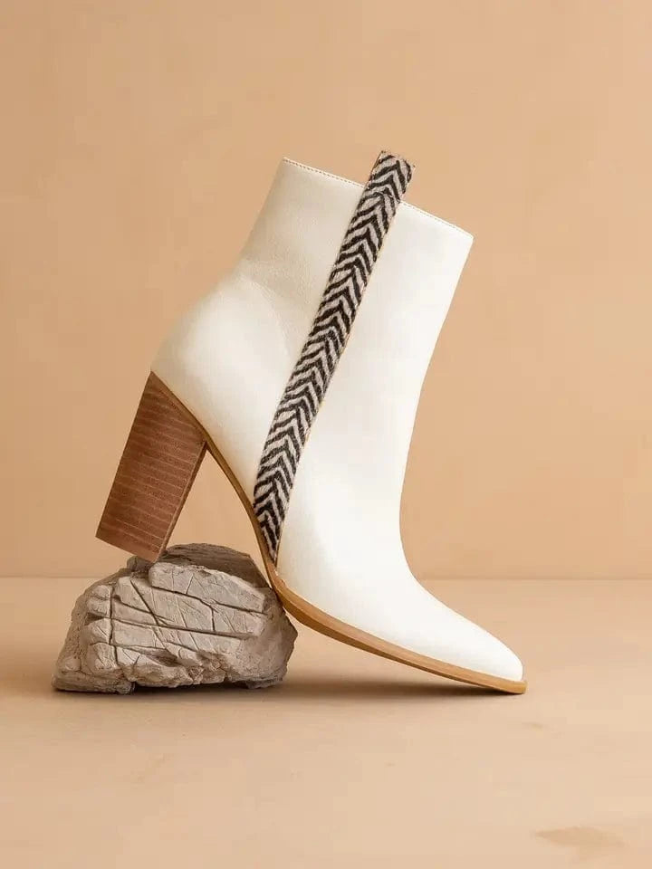 Step into game day style with The Lana Animal Print Bootie. These eye-catching white booties feature striking animal print accents and a sleek pointed toe that elevates any LSU fan's outfit. Crafted from premium vegan leather with a convenient zip-up closure, they blend team spirit with cruelty-free fashion. Perfect for showing your Tiger pride while maintaining sophisticated style.