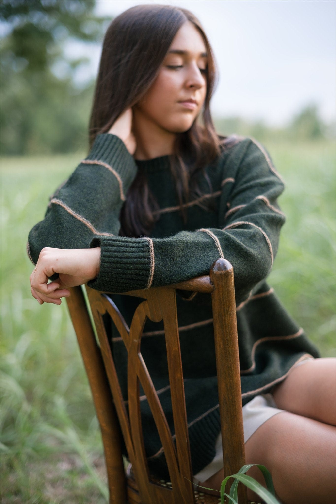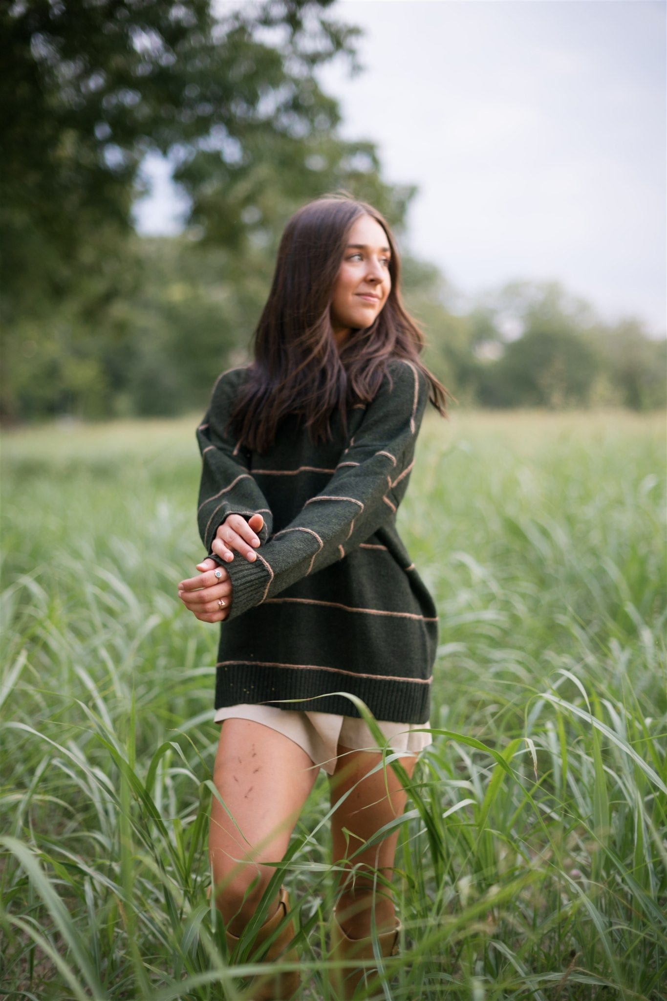 Embrace cozy comfort this fall with our Olive Striped Oversized Sweater. Crafted from soft knit fabric, its relaxed fit and long sleeves offer warmth and ease for chilly days. The subtle stripes and rounded neckline add timeless style, making it perfect for layering or wearing solo. This versatile sweater effortlessly combines comfort and fashion for your seasonal wardrobe.