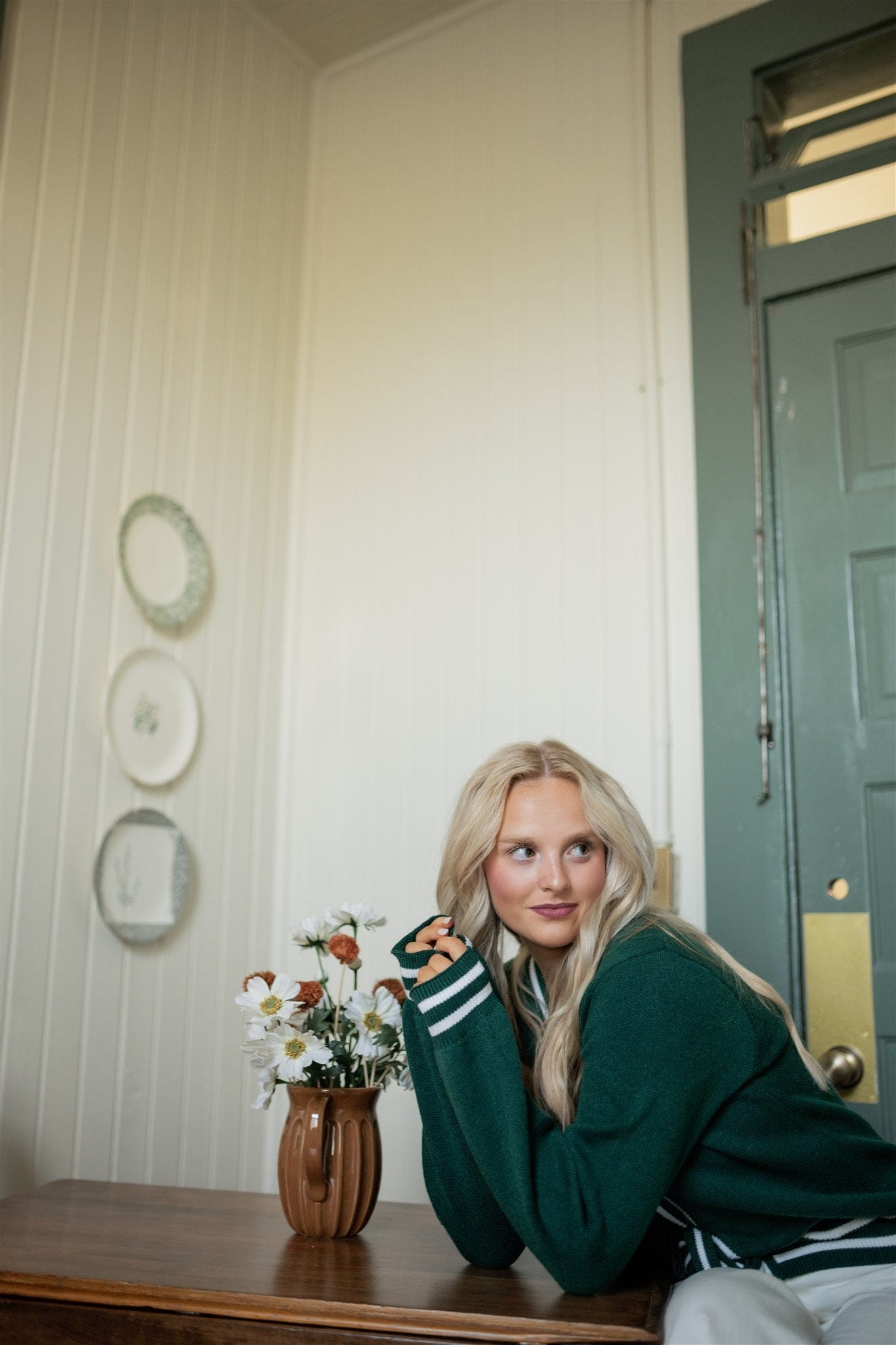 Wrap yourself in cozy style with our Green Bow Front Cardigan. The rich hunter green color is perfect for the holiday season, while the soft knit and stretchy fabric provide ultimate comfort. The v-neckline and bow detail add a touch of elegance to this classic button-up cardigan.