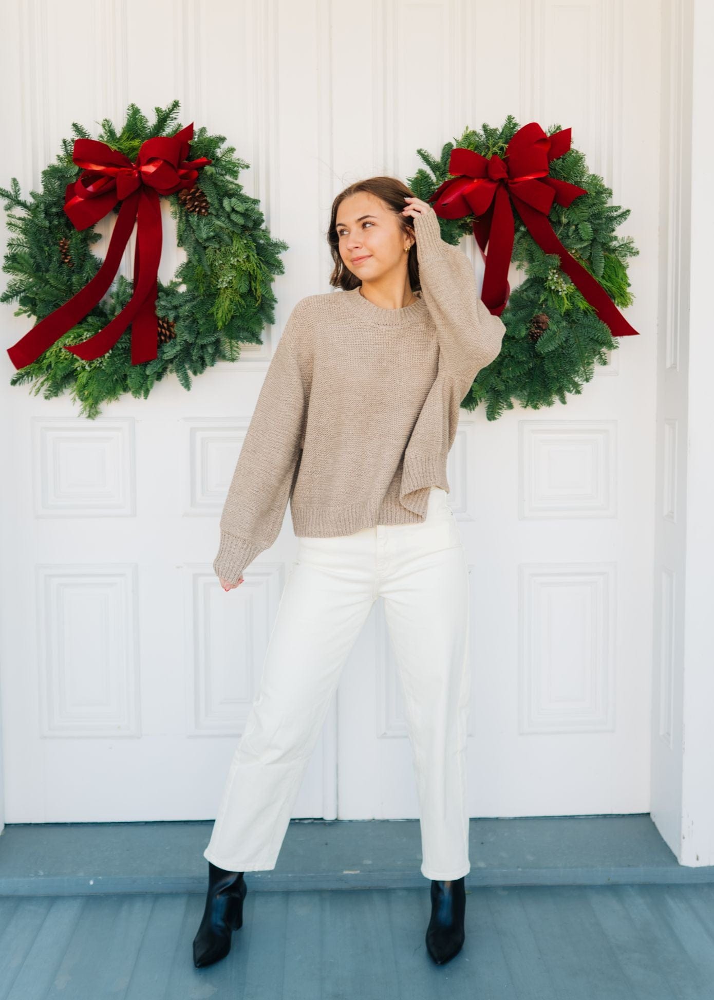Effortlessly chic and undeniably comfortable, this taupe brown sweater combines soft knit fabric with a flattering silhouette. The rounded neckline and voluminous balloon sleeves create an on-trend look that transitions seamlessly from casual to polished. Stretchy, breathable material moves with you throughout the day, while the flowy cut ensures a relaxed, sophisticated fit. Perfect for layering or wearing solo, this versatile piece elevates any wardrobe with understated elegance and timeless appeal.