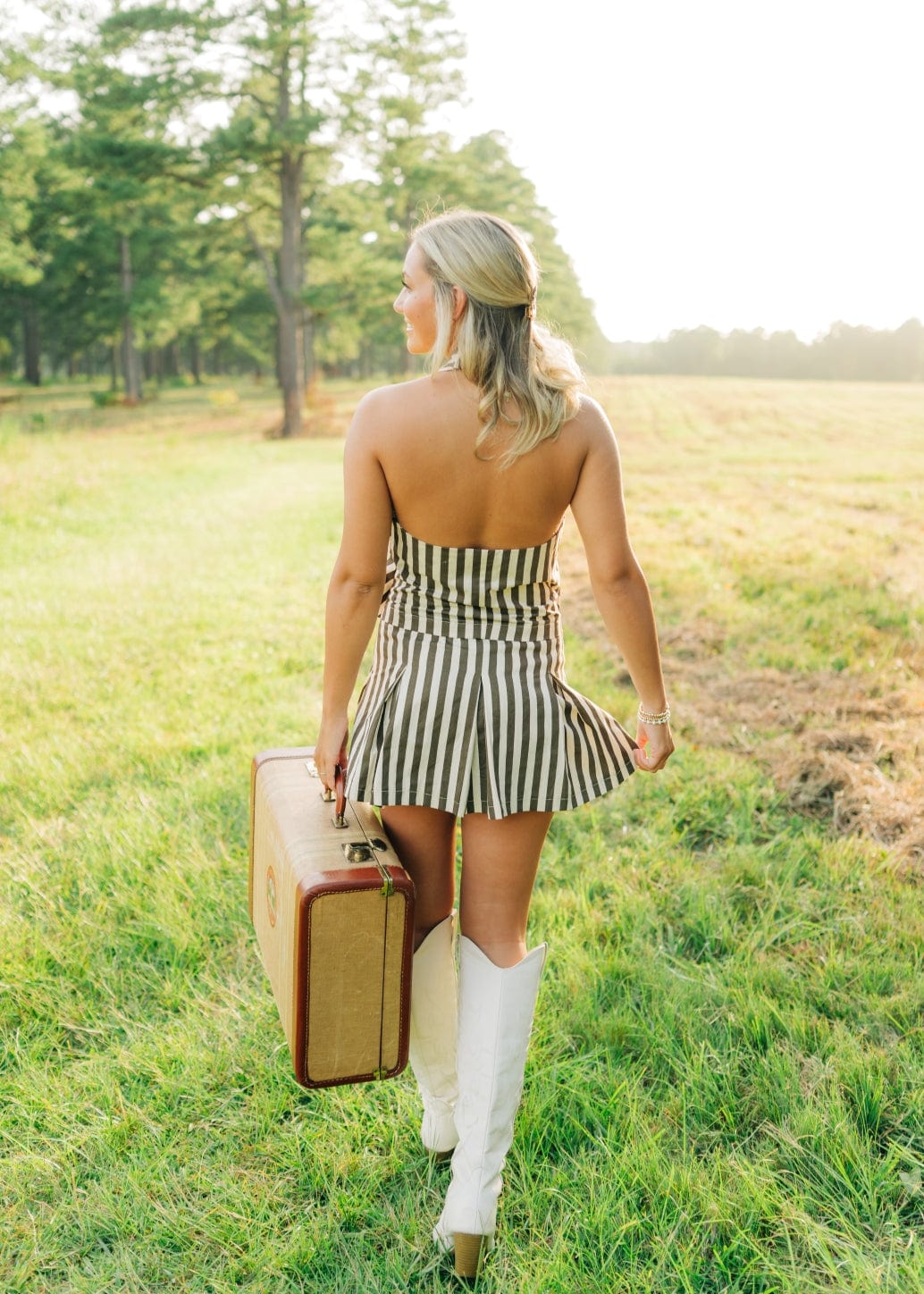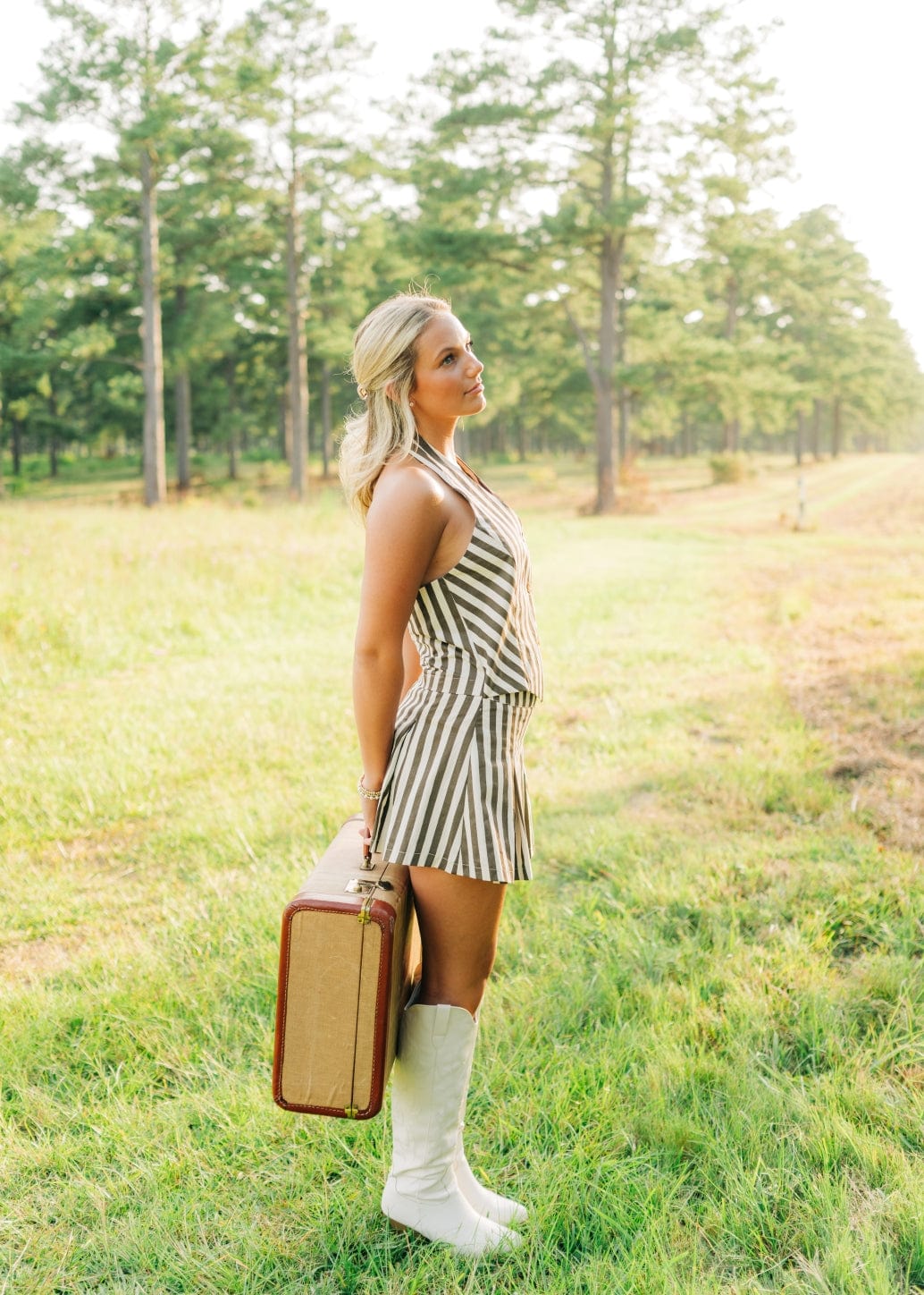 Elevate your summer style with our Brown Striped Pleated Vest Mini Dress! The halter neck and v-neckline create a flattering silhouette, while the button front and pleated design add a touch of sophistication. Perfect for any occasion, this mini dress will keep you looking chic and comfortable.