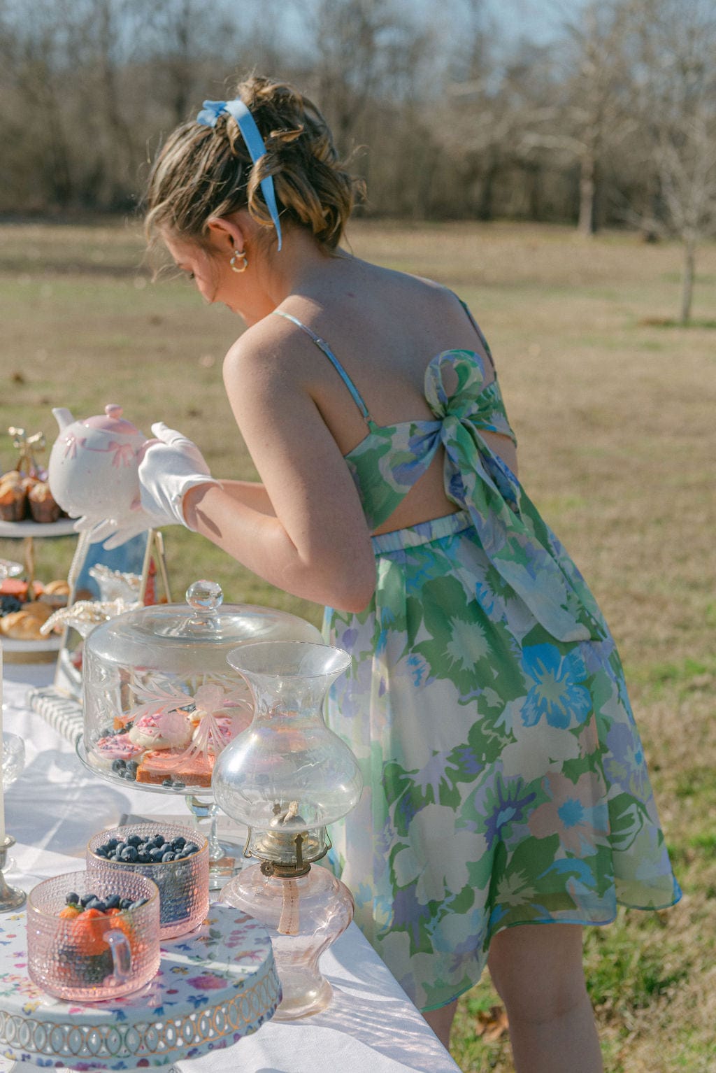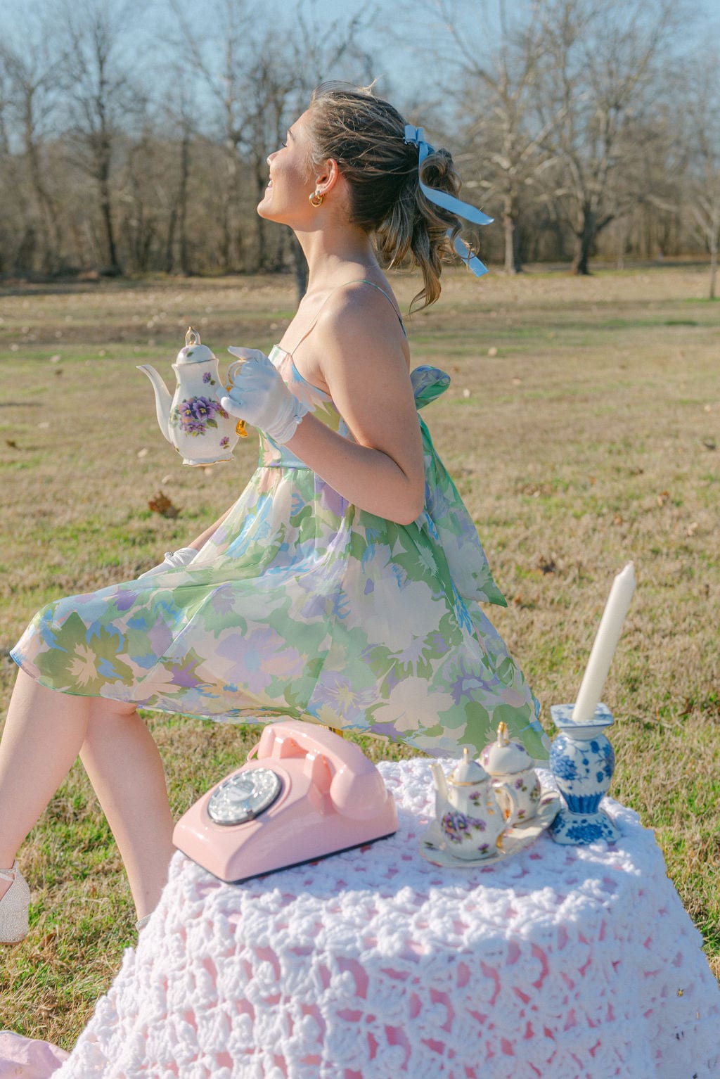 Indulge in the beauty of our Green Multi Tie Back Mini Dress! The stunning floral design and shimmer mesh overlay will make you stand out at any wedding. Adjust the spaghetti straps for the perfect fit and tie back closure adds an elegant touch. Feel confident and flow through the night in this must-have dress.