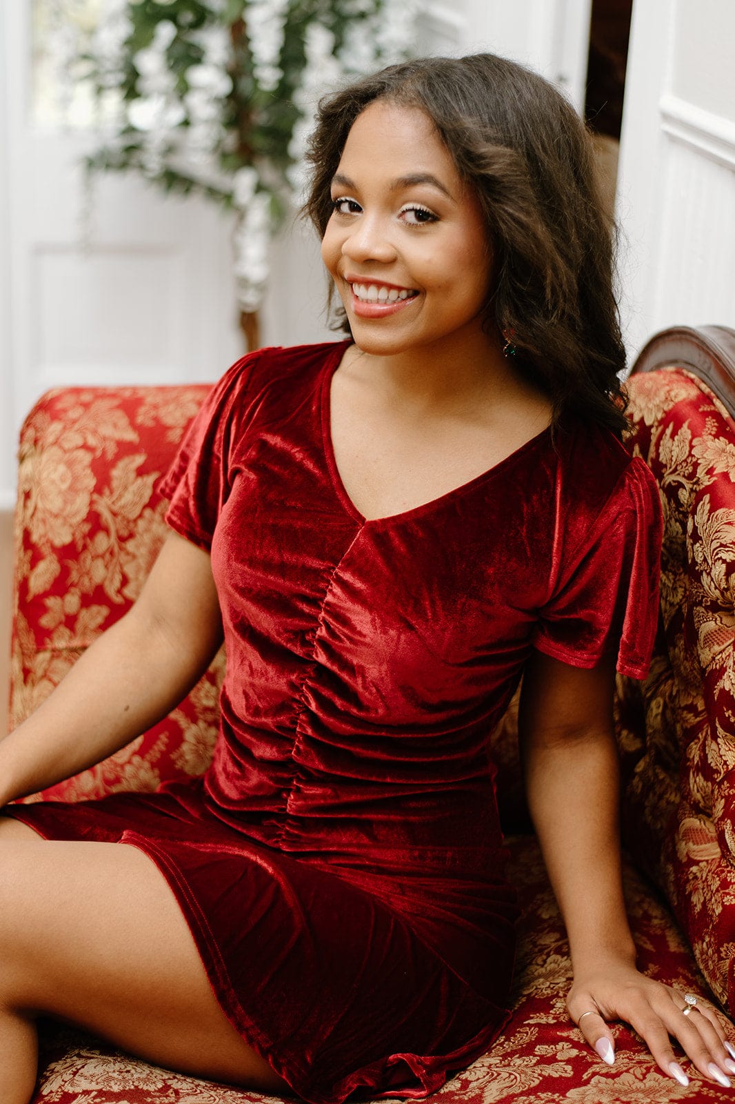 - smooth, shimmering velvet and ruching to accentuate the positive - this could be your perfect party dress