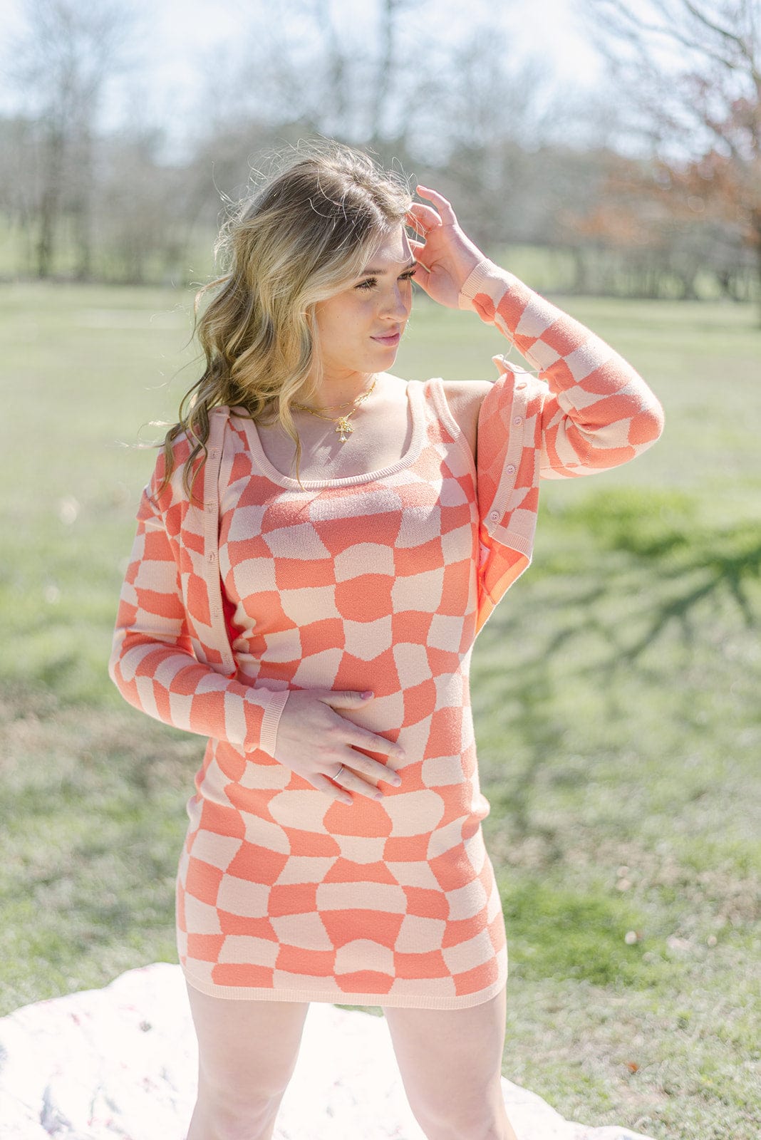 Transition into spring with our Peach Checkerboard Set Dress! Featuring a scoop neck and back, this sleeveless dress is made from a stretchy, knit fabric that hugs your body for a comfortable and flattering fit. Perfect for any occasion, this dress will make you feel confident and stylish.
