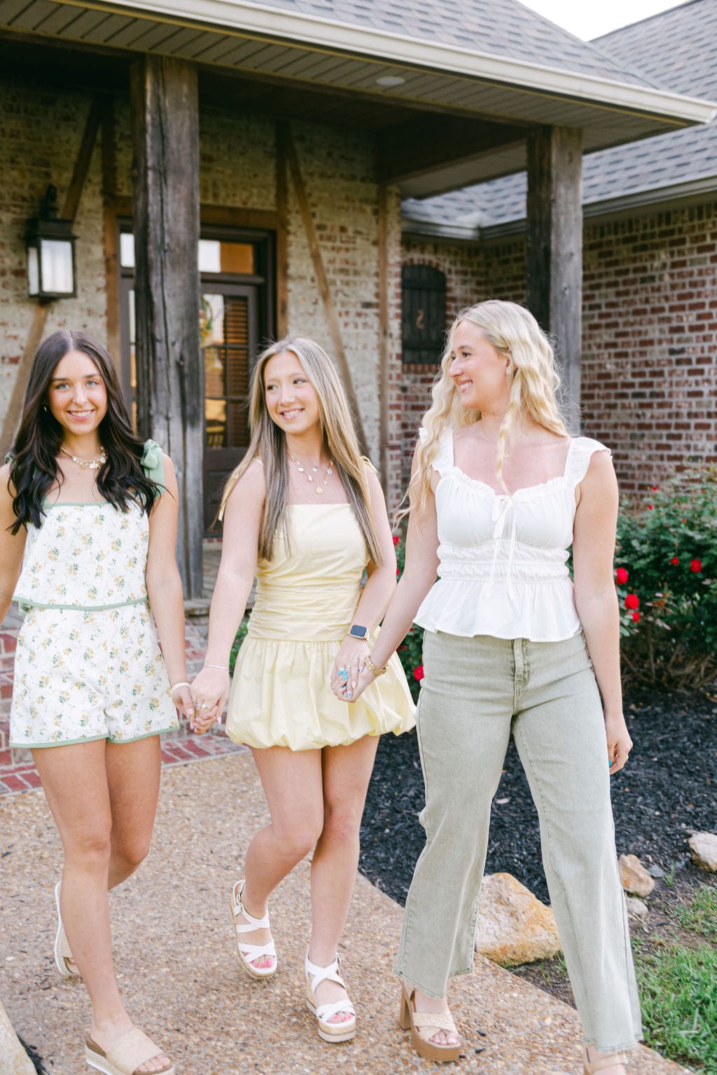 Effortlessly chic and oh-so-sweet, our Yellow Shoulder Tie Bubble Hem Dress will have you feeling like a breath of fresh Spring air. The pale yellow hue and shoulder tie straps add a playful touch, while the square neckline and bubble hem create a flattering silhouette. Perfect for mini dress lovers, with a drop waist and back zip closure for easy wear. Get ready to turn heads in this must-have dress!