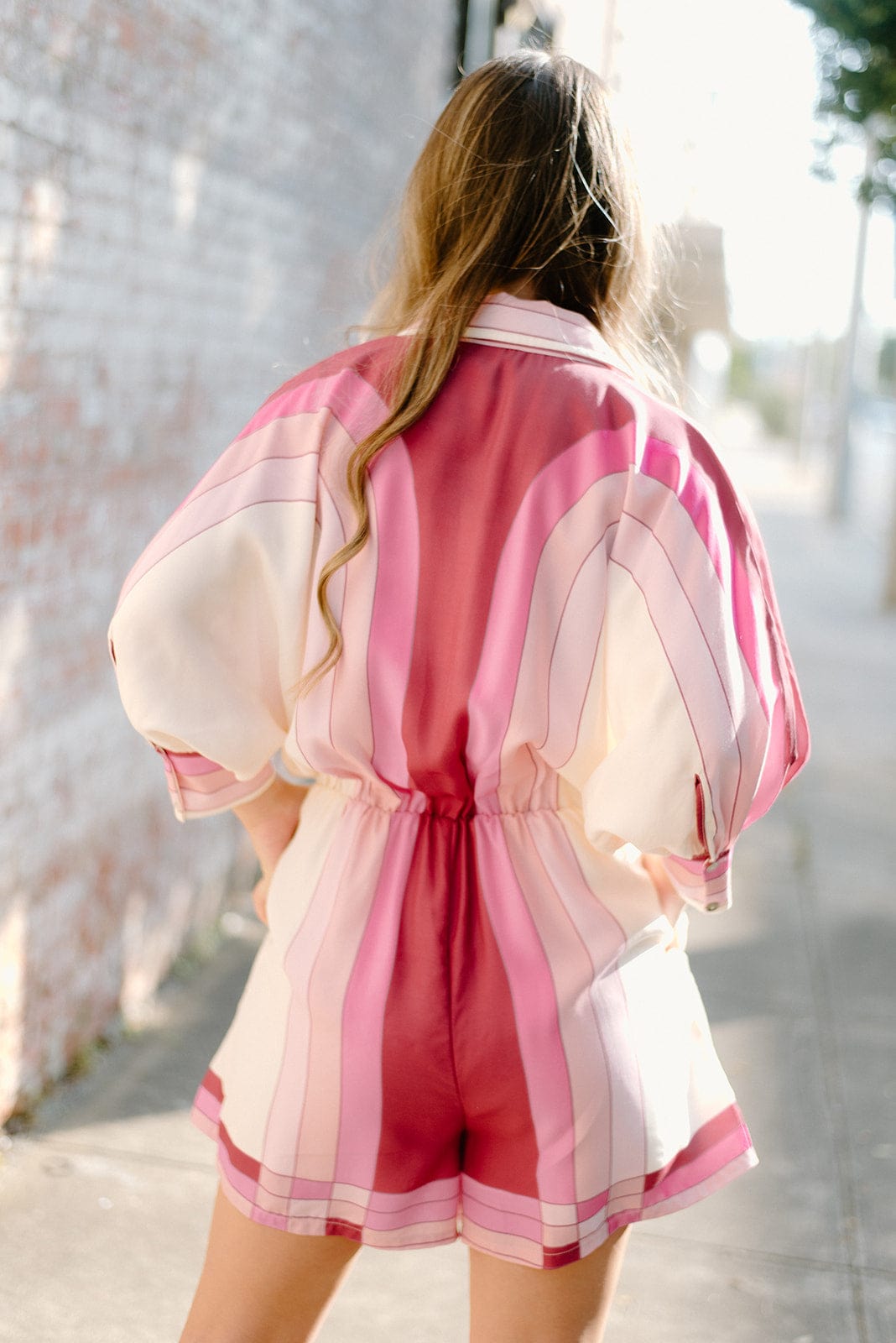 we get a real vintage vibe from the colors and patterns in this new silky romper