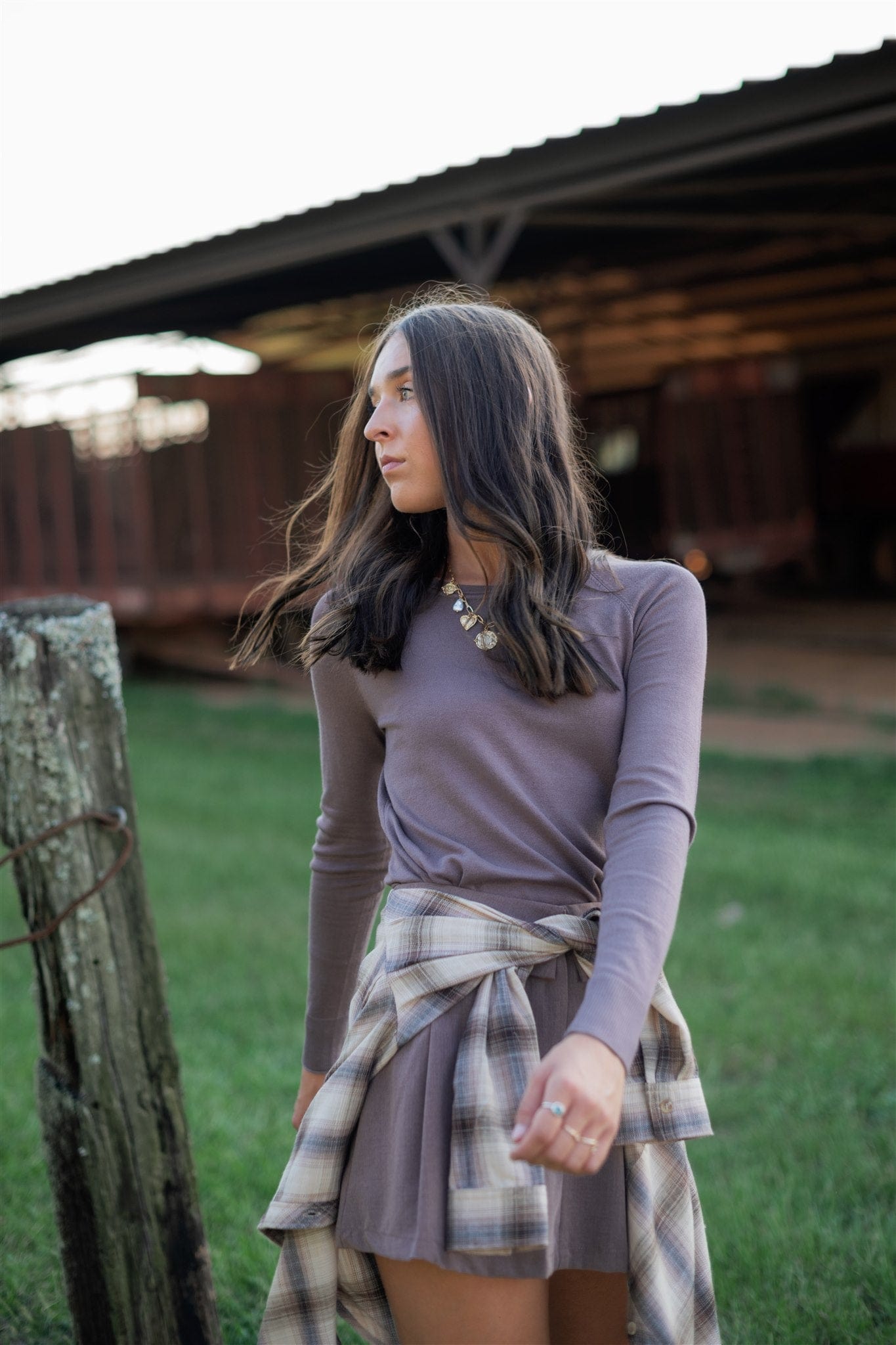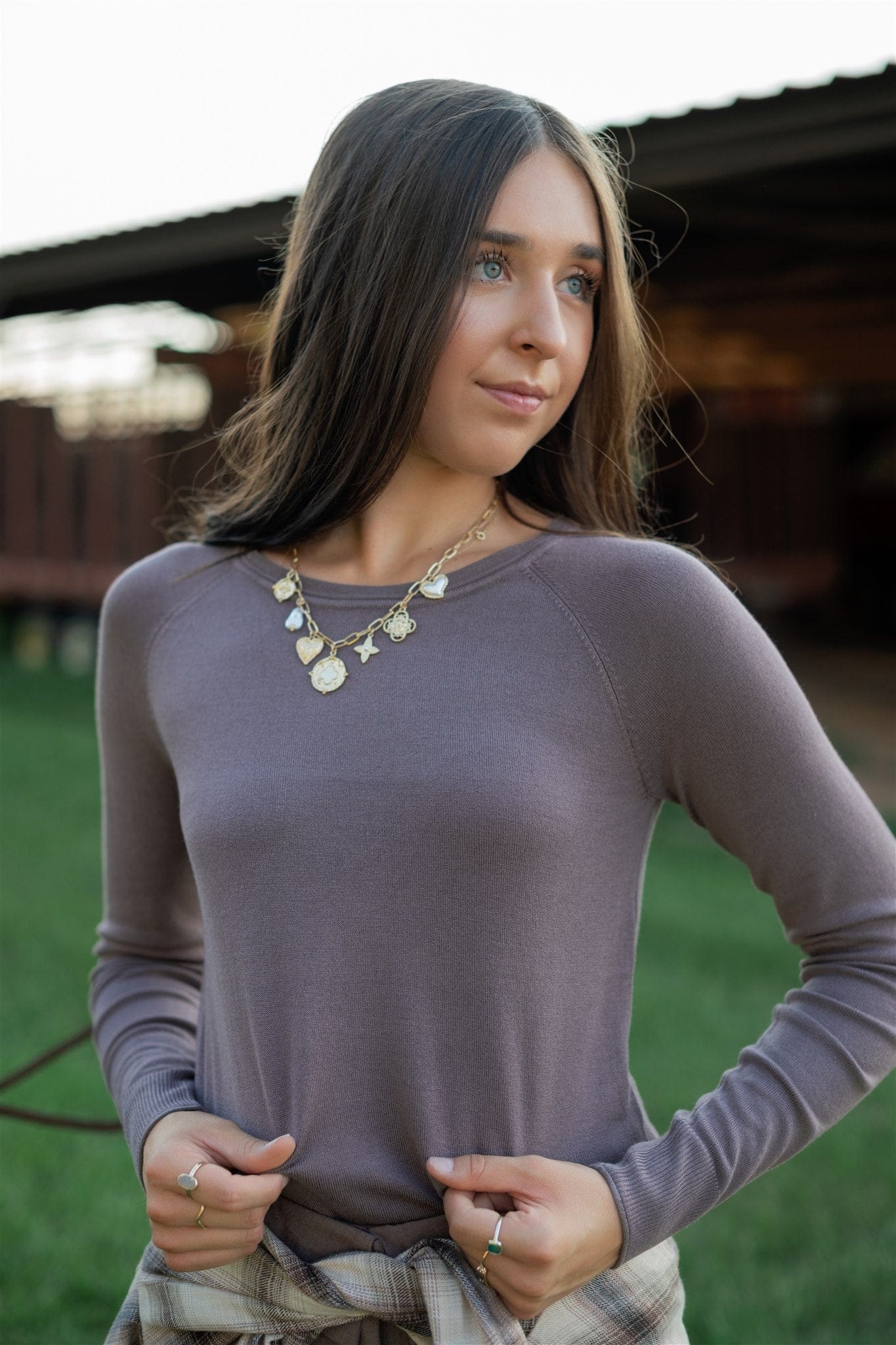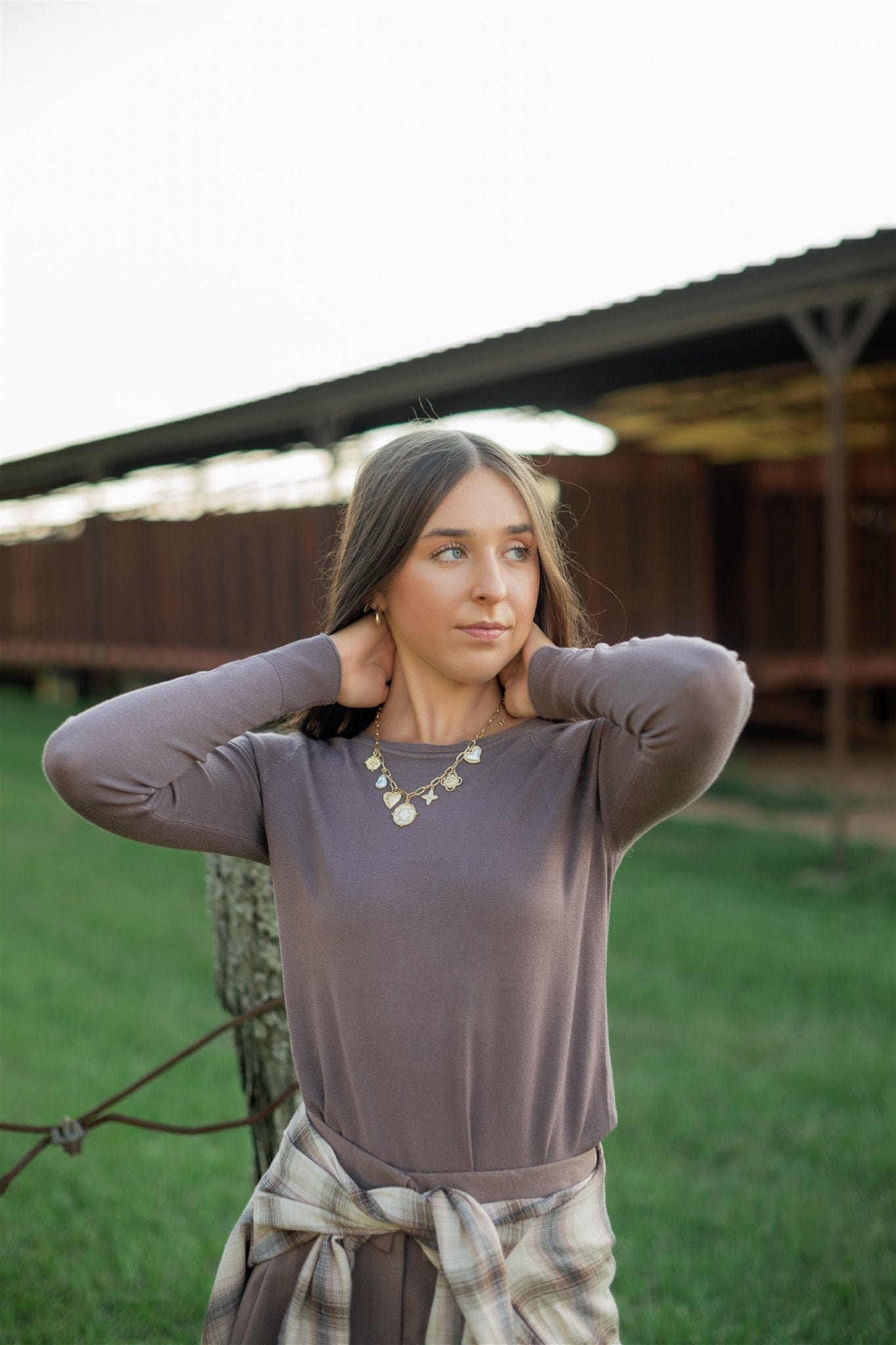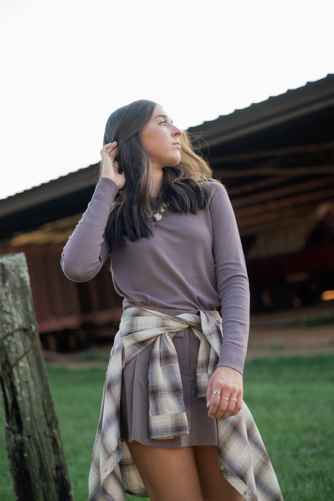 Embrace cozy elegance this Fall with our Chocolate Brown Lightweight Sweater. Crafted from a stretchy knit fabric, it offers a comfortable fit that moves with you. The rounded neckline and long sleeves create a classic look, while side slits add subtle style and ease of movement. Perfect for layering or wearing on its own, this sweater keeps you comfortably warm without feeling heavy. Elevate your seasonal wardrobe with a versatile piece designed for both comfort and chic simplicity.