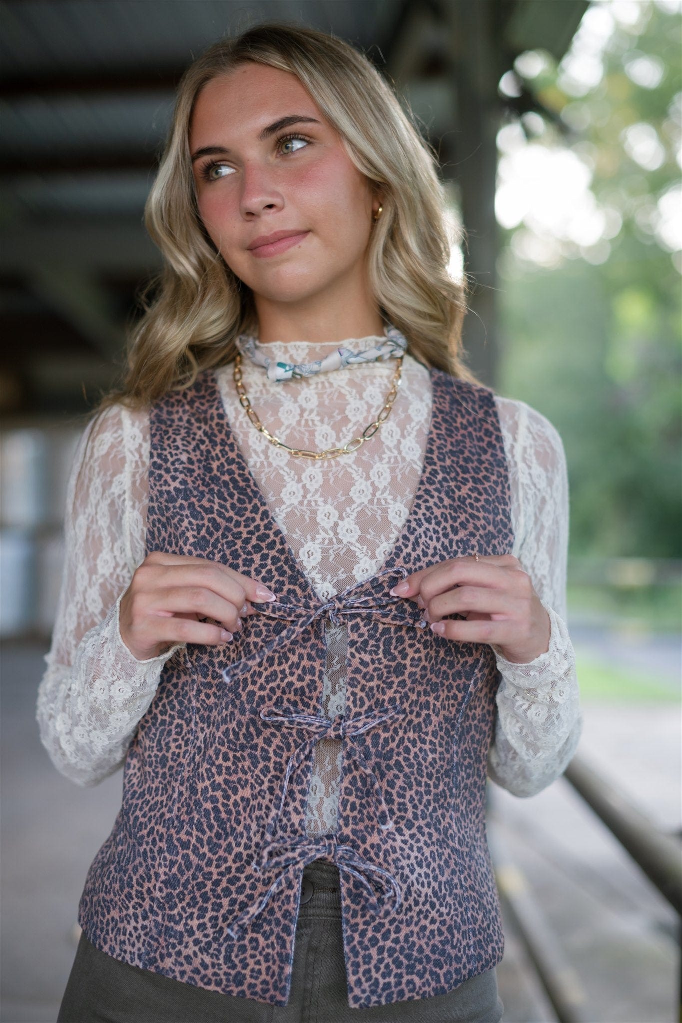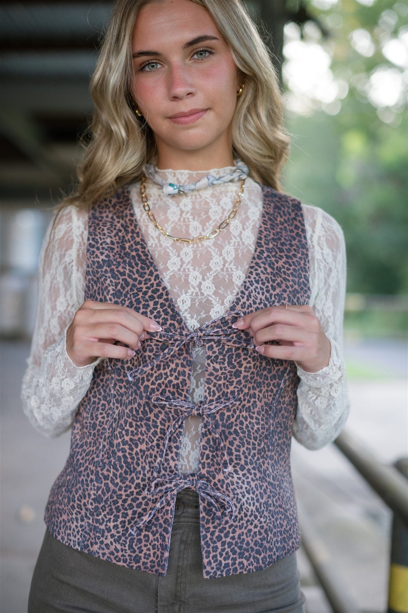 Leopard Tie Front Vest Top
