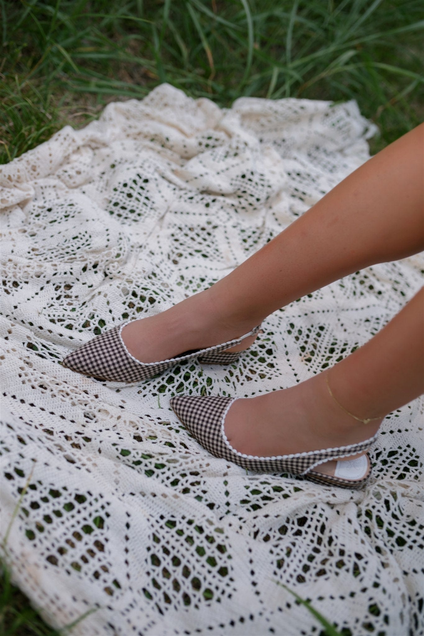 Step into autumn with these Brown Checkered Pointed Toe Flats, crafted to blend timeless style with subtle elegance. The classic checkered pattern pairs beautifully with delicate lace trim, adding a feminine touch to the sleek pointed toe design. Lightweight and comfortable, these ballet flats are perfect for all-day wear, making them an essential addition to your fall wardrobe. Elevate your look effortlessly while enjoying versatile comfort every step of the season.