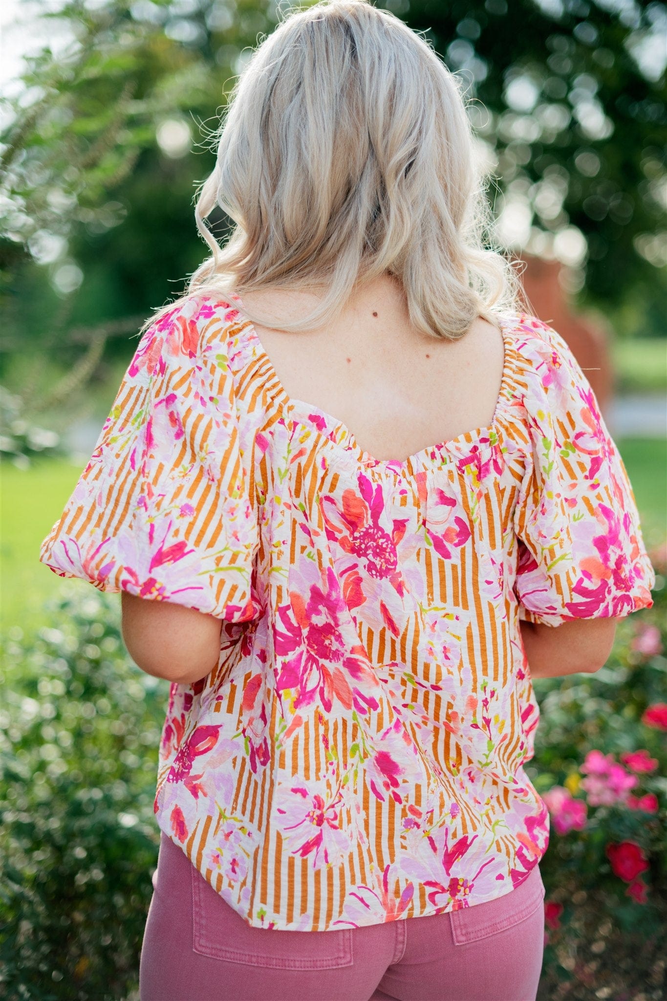 Embrace effortless style this fall with our Pink Floral Print Puff Sleeve Blouse. Crafted from lightweight fabric, it features a flattering scoop neck and delicate short puff sleeves for a feminine touch. The flowy silhouette paired with soft pink and taupe florals makes it perfect for layering during seasonal transitions, keeping you comfortable and chic all day long.