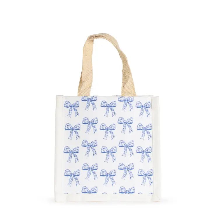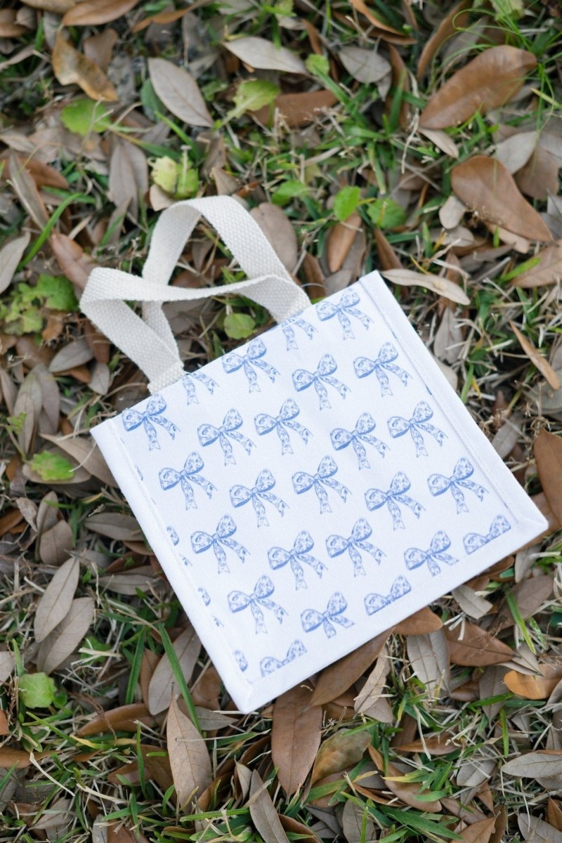 Elevate your spring essentials with this charming petite tote—the perfect blend of practicality and style. Featuring crisp white and blue tones accented with delicate bows, this compact accessory transitions seamlessly from weekend errands to casual outings. Lightweight yet spacious enough for your everyday necessities, it's an ideal companion for those who appreciate refined details without sacrificing function. A versatile piece that pairs effortlessly with any spring wardrobe.