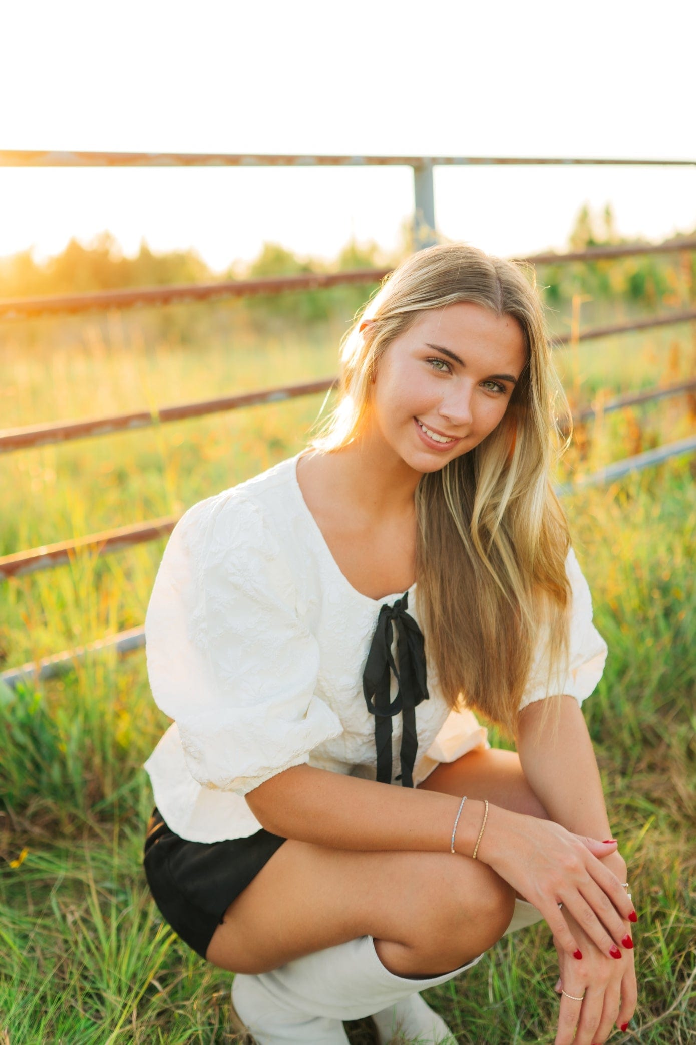 Elevate your wardrobe with this Cream Jacquard Puff Sleeve Blouse, featuring delicate black ribbon accents that add subtle contrast. The button-up front and scoop neckline create a flattering, feminine silhouette, while the short puff sleeves offer a stylish, vintage-inspired touch. Crafted to flow effortlessly, this blouse ensures comfort and elegance, making it perfect for both casual outings and dressier occasions.