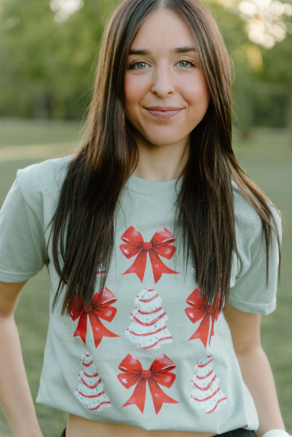 Spread holiday cheer with our Little Debbie Christmas Coquette Tee! This festive tee features a beautiful green and red design, perfect for the holiday season. The short sleeves and rounded neckline provide comfort, while the stretchy and flowy fabric offers a flattering fit. Get in the holiday spirit with this must-have holiday tee!