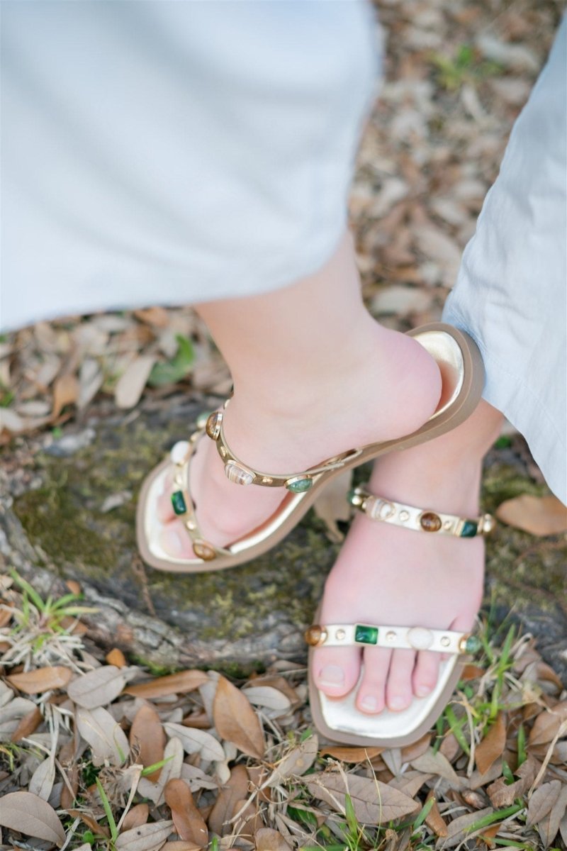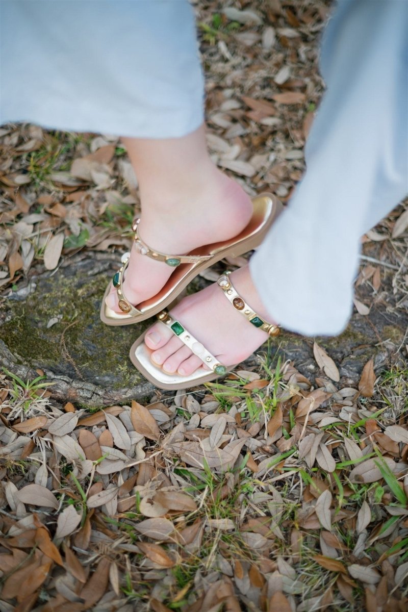 Gold Studded Double Strap Sandals