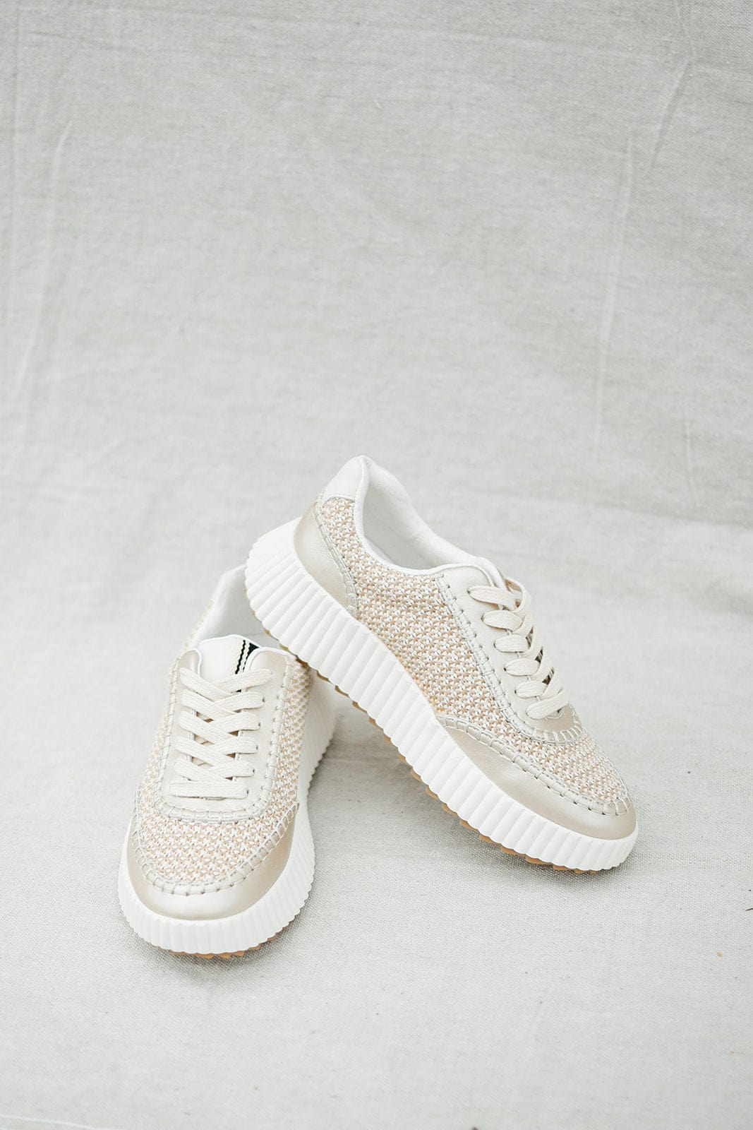 Introducing the Shu Shop Gold Selina Sneaker - crafted from a stunningly versatile woven gold, this showstopper of a shoe will give you an instant edge to take your look to the next level. With its platform sole, you’ll be both fashionable and comfortable!