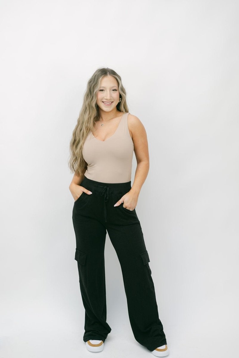 Upgrade your loungewear game with our Black Cargo Drawstring Pants! Made from a soft and lightweight stretchy fabric, these casual chic pants feature a straight leg design and functional cargo pockets. The real drawstring allows for a personalized fit while you run errands, lounge, or binge watch your favorite shows. Comfort and style, all in one!