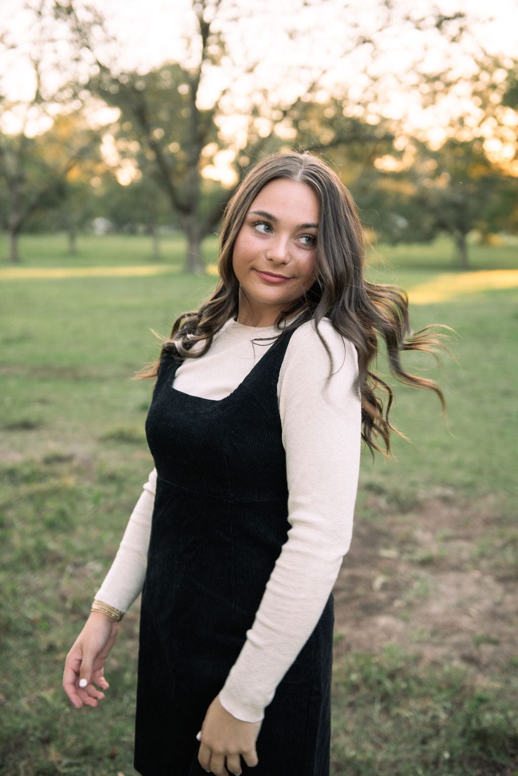 Elevate your style with our Black Corduroy Pinafore Mini Dress! Crafted with soft corduroy fabric, this sleeveless dress features a chic square neckline and a convenient side zip closure. Perfect for Fall, it's a must-have for any fashion lover. Upgrade your wardrobe today!