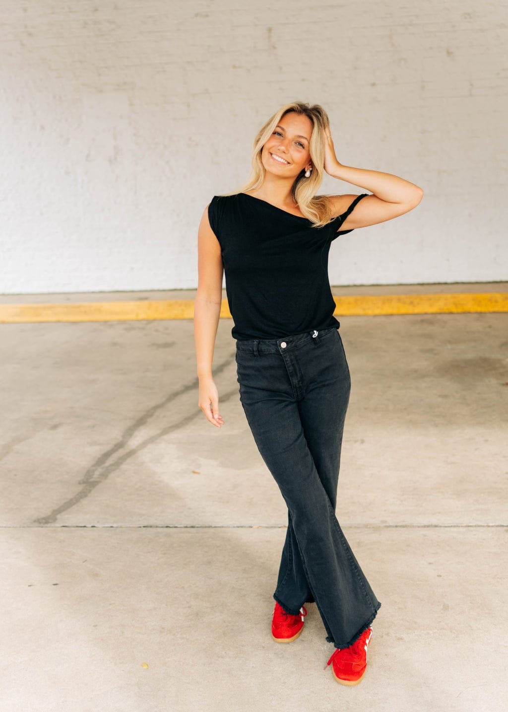Elevate your denim game with our Black Frayed Straight Leg Jeans. The high waist and stretchy fabric make for a comfortable fit, while the frayed hem adds a touch of edginess. Perfect for standing out in the crowd, these jeans will be your new go-to.