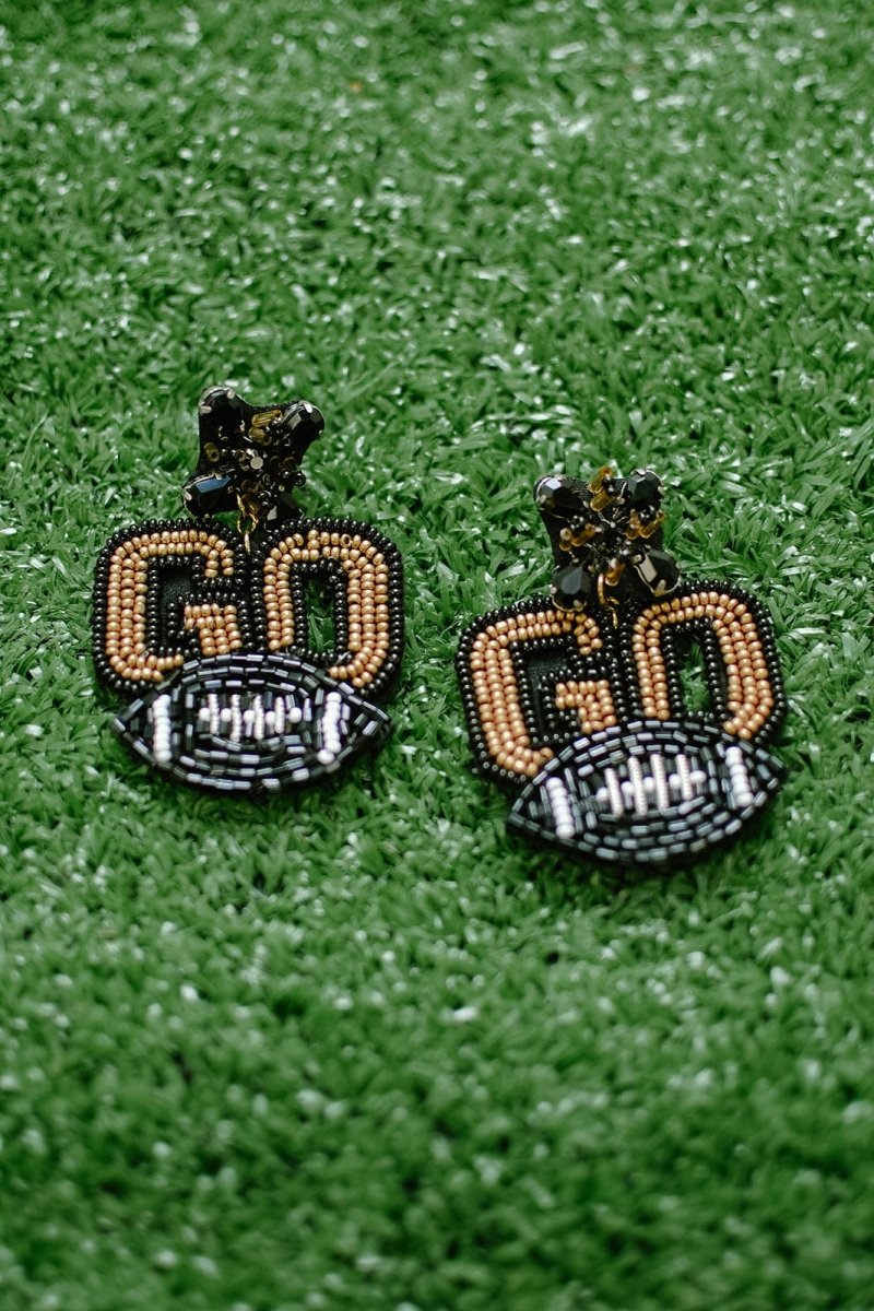 Make a bold fashion statement with these dynamic Black & Gold "GO" Beaded Drops! The perfect accessories to give any outfit an empowering twist, these beautiful drops are sure to help you stand out and shine!