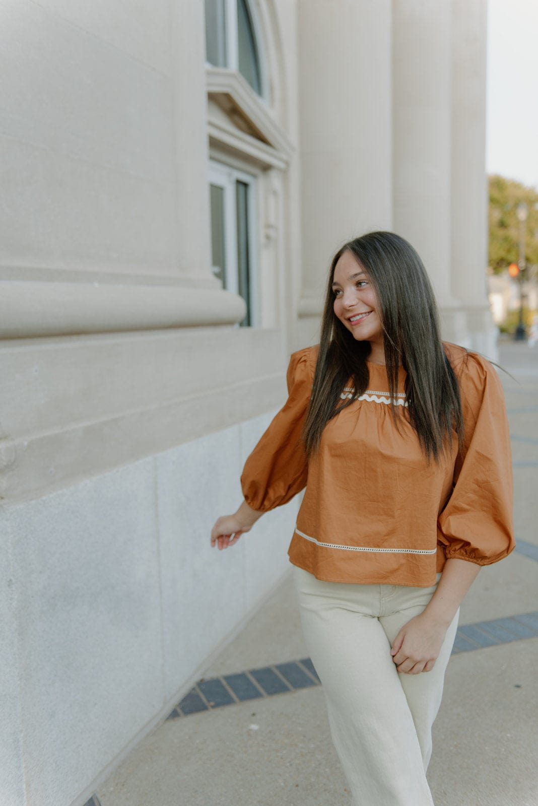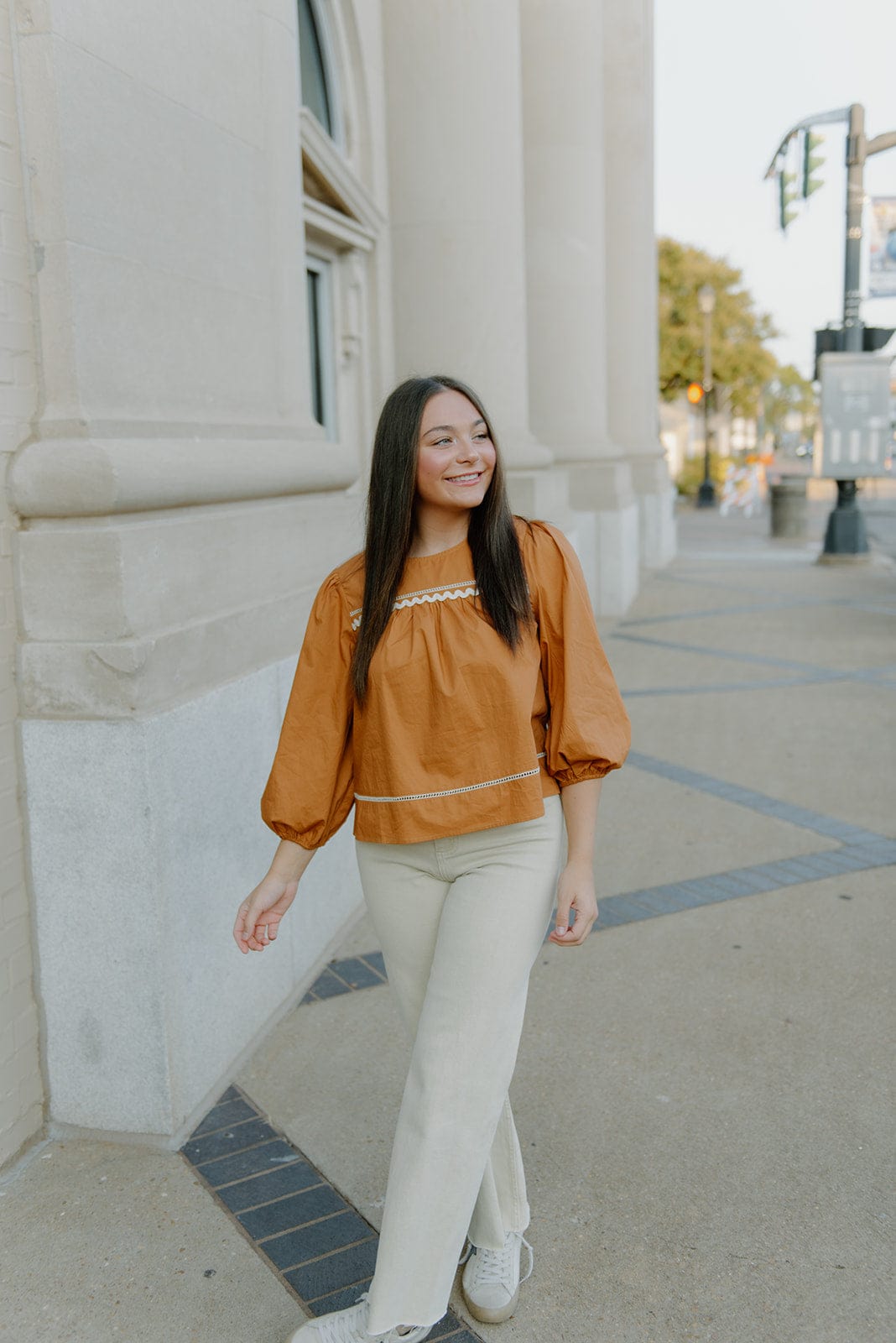 This Camel Detailed Long Sleeve Blouse is the perfect piece to elevate your Fall wardrobe. The camel color and flowy design bring a touch of elegance while the rounded neckline and 3/4 puff sleeves add a touch of femininity. Dress it up or down for any occasion and feel confident and stylish.