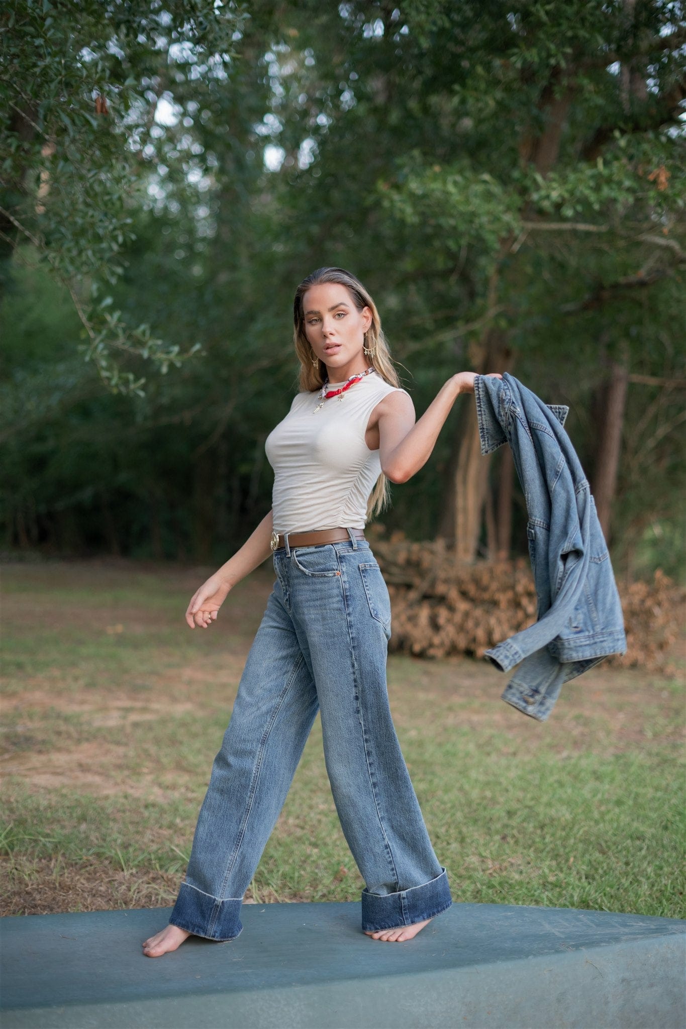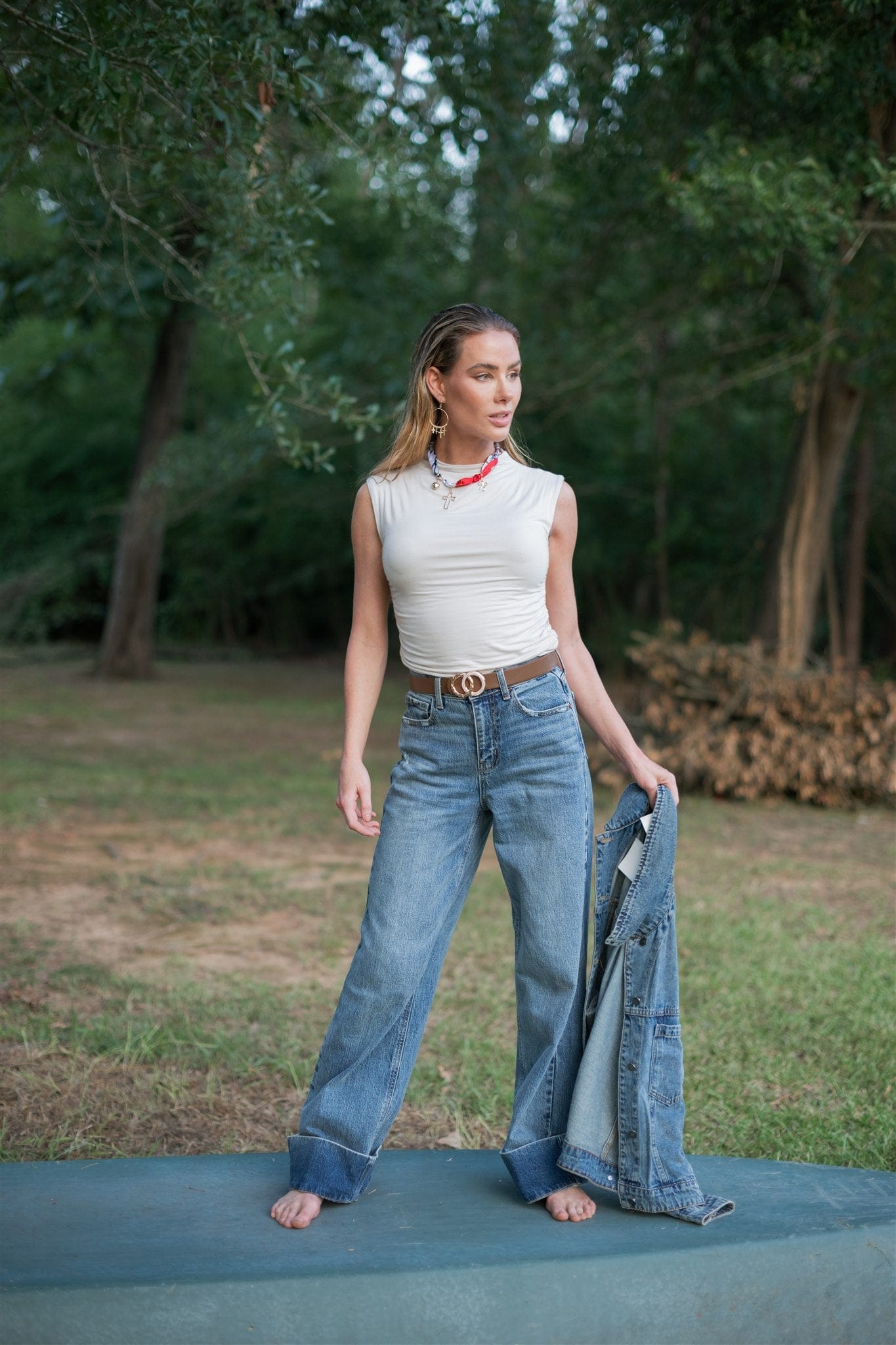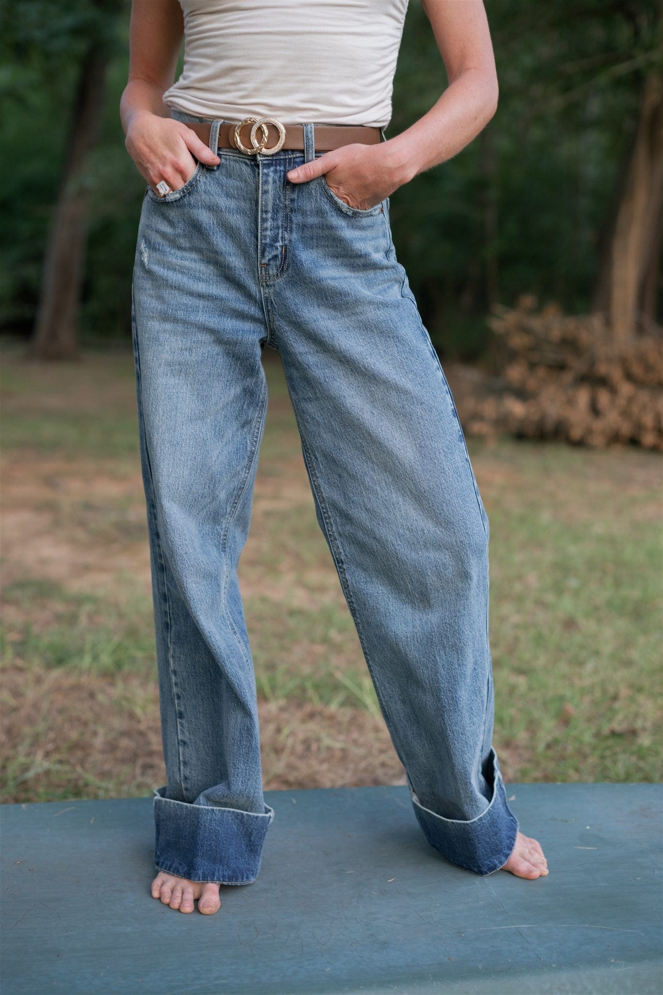 Elevate your fall wardrobe with the Cello Cuffed Hem Wide Leg Jeans. Crafted from stretchy medium wash denim, these high-waisted jeans offer both comfort and style. The wide leg silhouette and cuffed hem create a flattering, on-trend look perfect for layering or wearing solo. Embrace effortless chic and versatility this season with these must-have jeans.