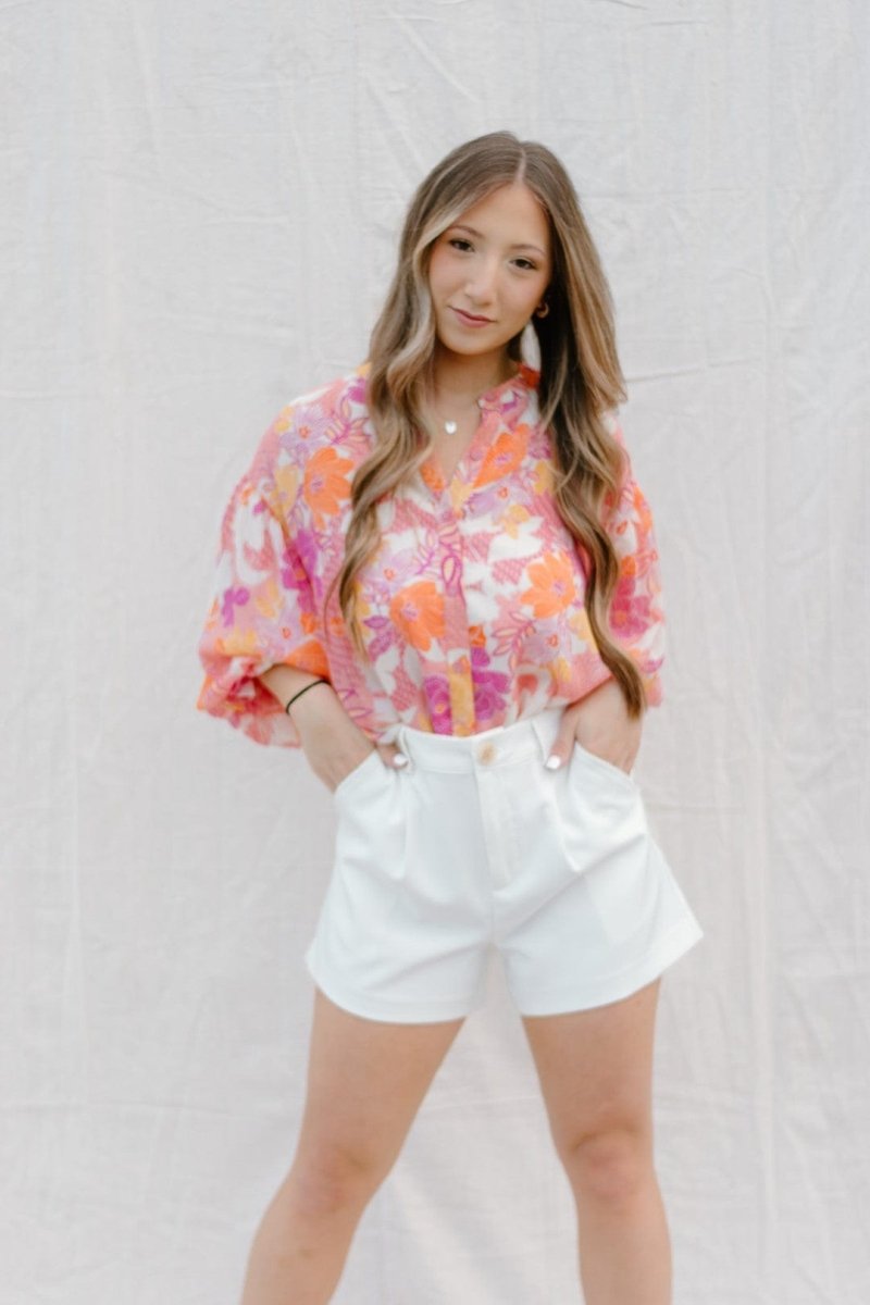 Cream High Waisted Flowy Shorts
