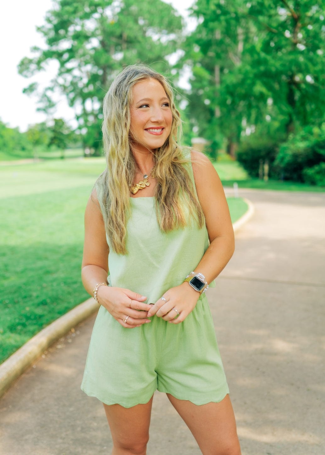 Elevate your Spring wardrobe with our Kiwi Scallop Trim Short Set! An elastic waist and flowy shorts provide both comfort and style, while the square neckline and sleeveless design add a touch of elegance. The lightweight material and cropped hem make it perfect for warmer days. Don't miss out on this must-have Spring set!