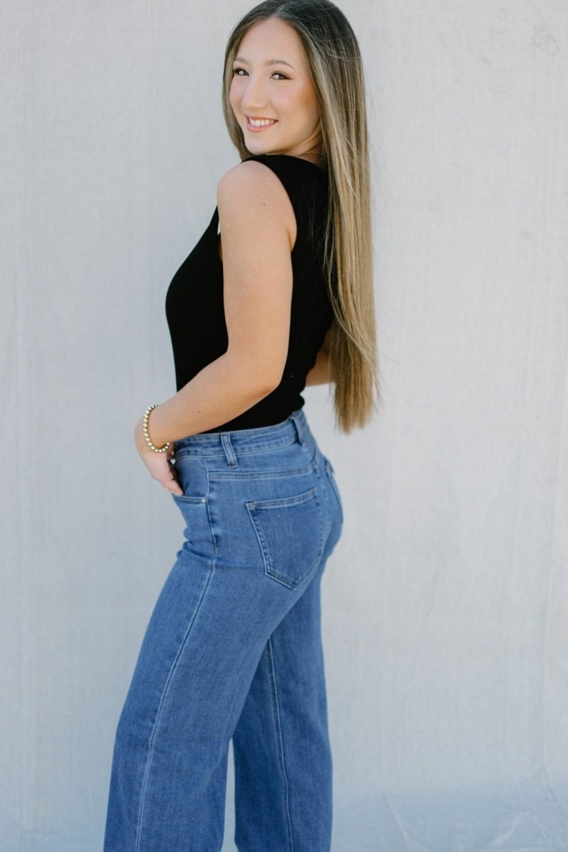 Mid Rise Clean Wide Leg Jeans