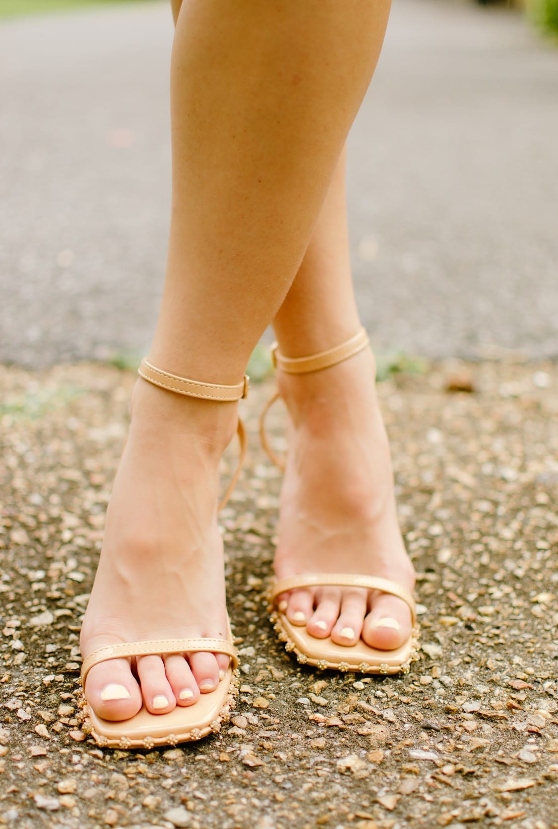Nude Glitz Square Toe Heels