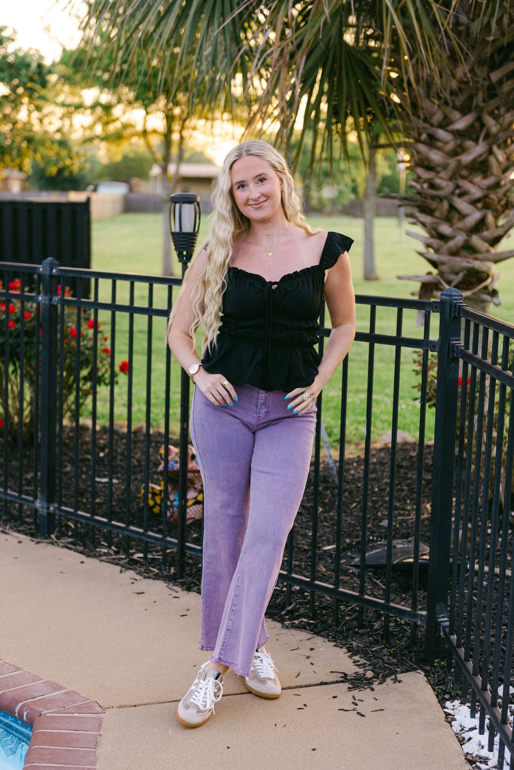 Elevate your denim game with our Purple Frayed Straight Leg Jeans. The high waist and stretchy fabric make for a comfortable fit, while the frayed hem adds a touch of edginess. Perfect for standing out in the crowd, these jeans will be your new go-to.