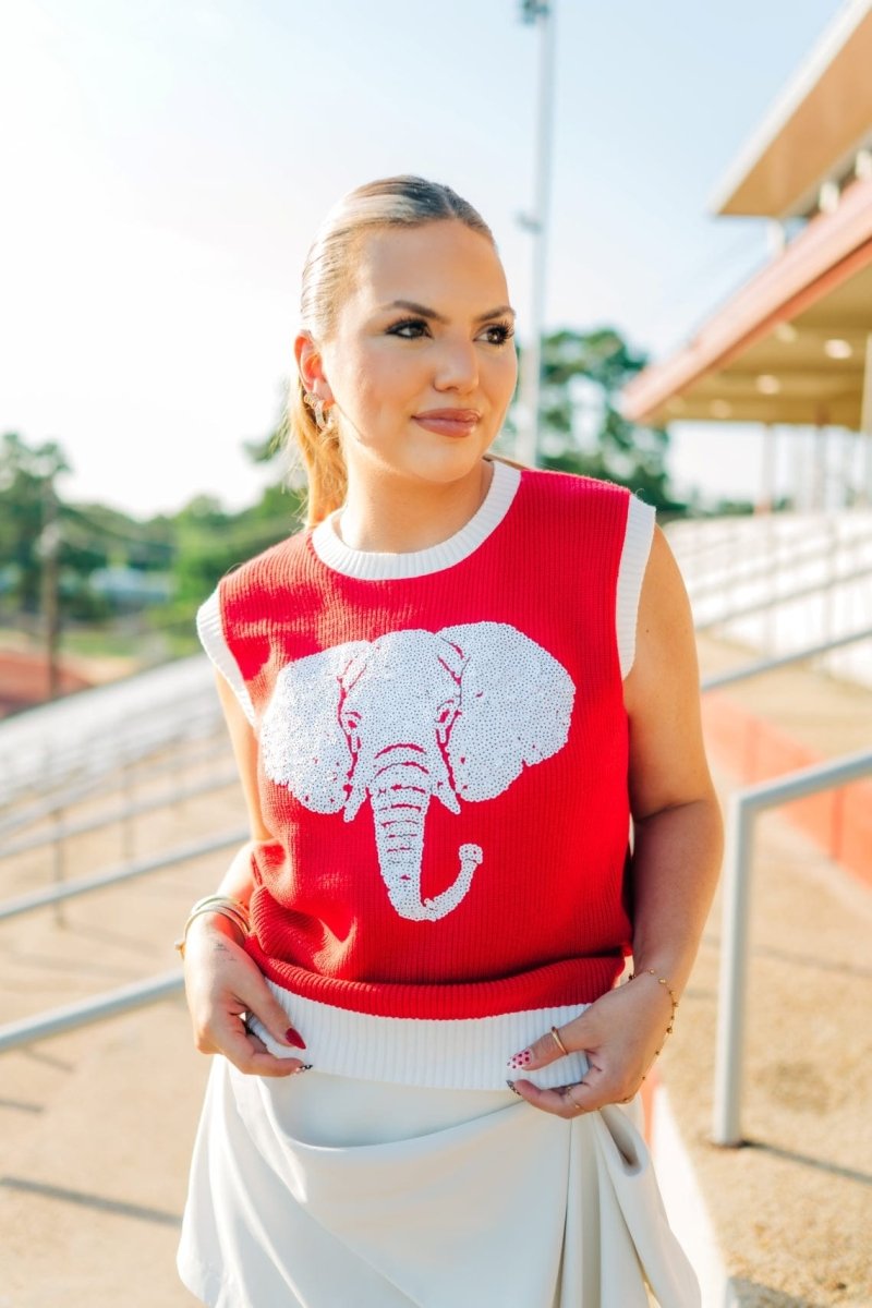 Red Sequin Elephant Knit Vest