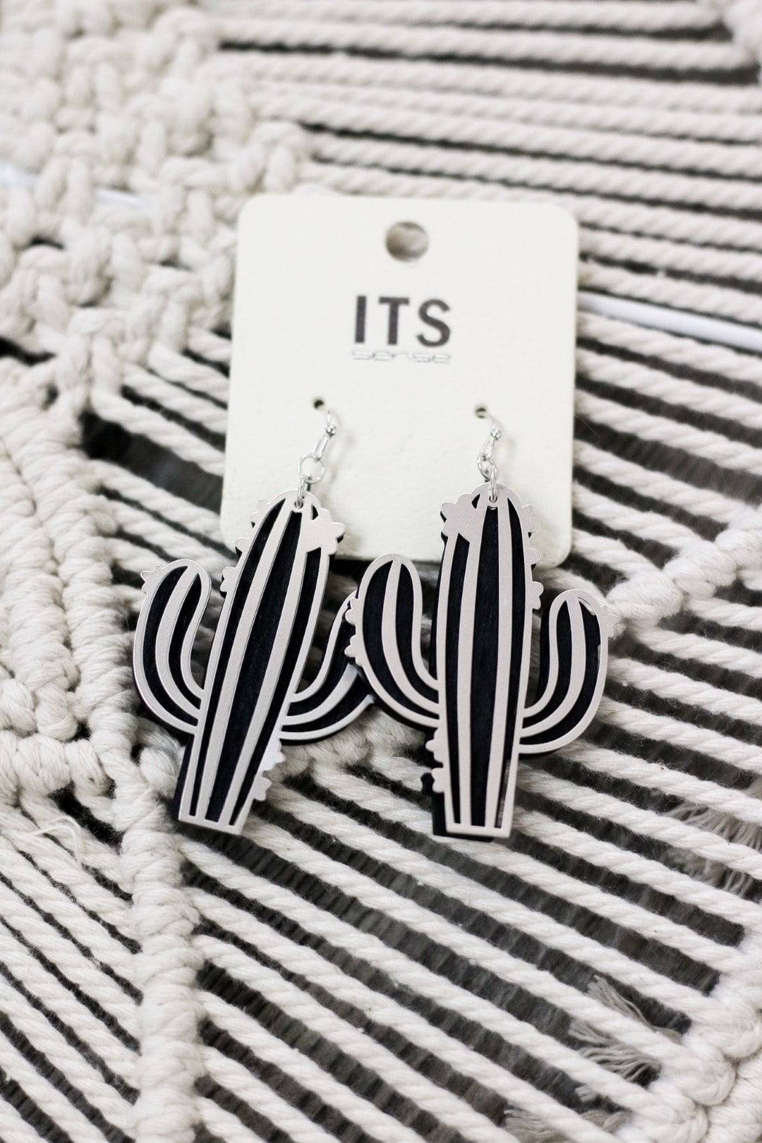Silver Shadow Cactus Wood Earrings