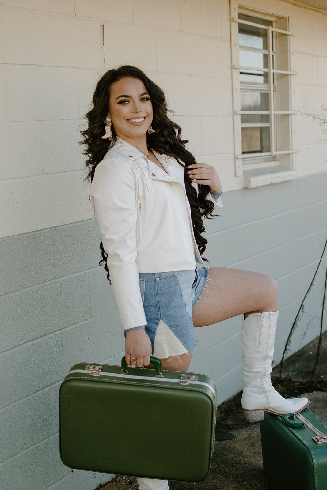 • faux suede fringe at the front and back yoke give a touch of western detailing