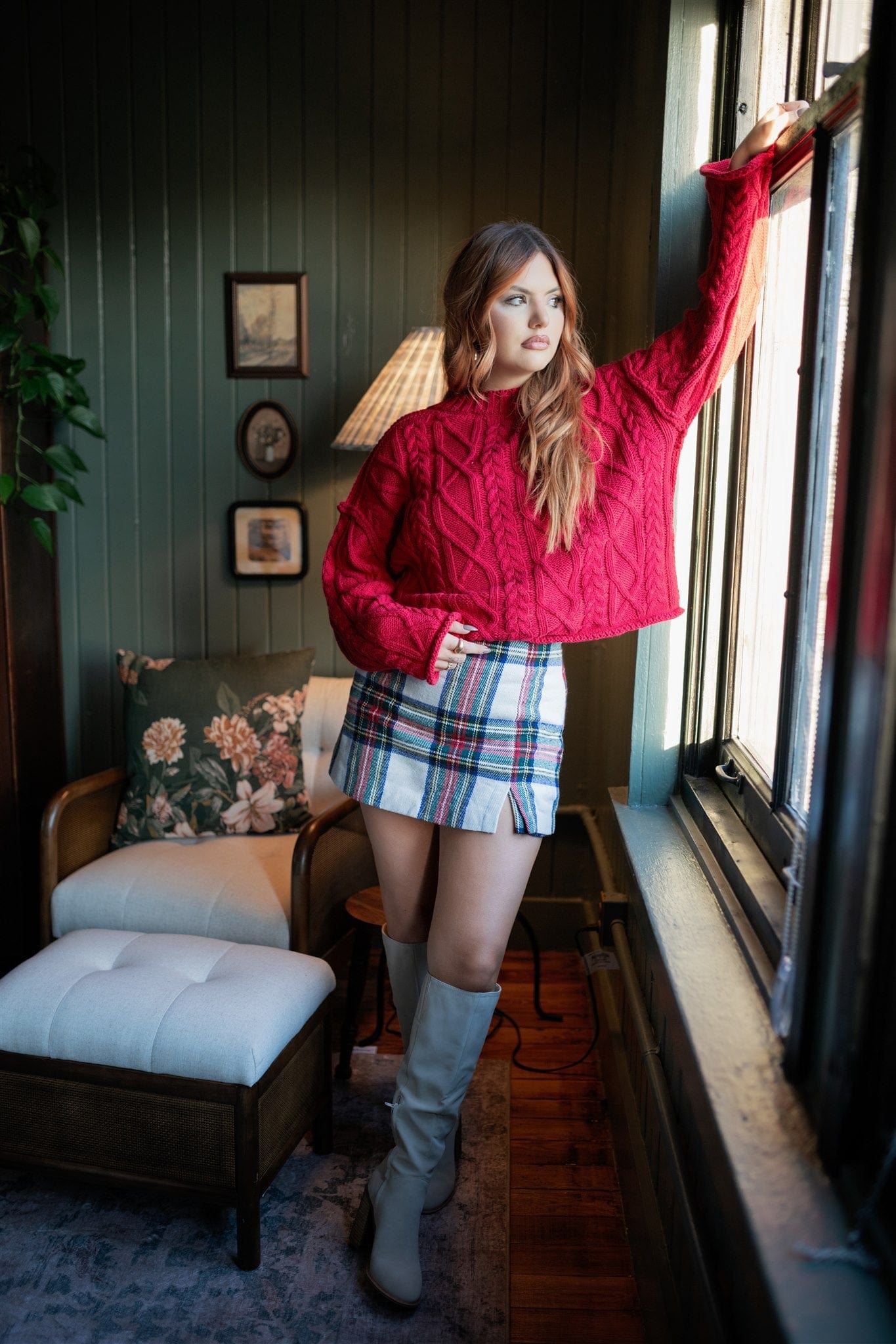 Elevate your style with this White Plaid Wool Mini Skort, featuring a vibrant red and green, yellow and blue plaid pattern. Crafted for comfort and a flattering fit, it combines the chic appeal of a skirt with the ease of shorts. Perfect for versatile looks, this skort offers effortless sophistication whether you’re dressing up or keeping it casual. Add a fresh twist to your wardrobe and enjoy a playful yet polished statement piece. Perfect for holiday events.